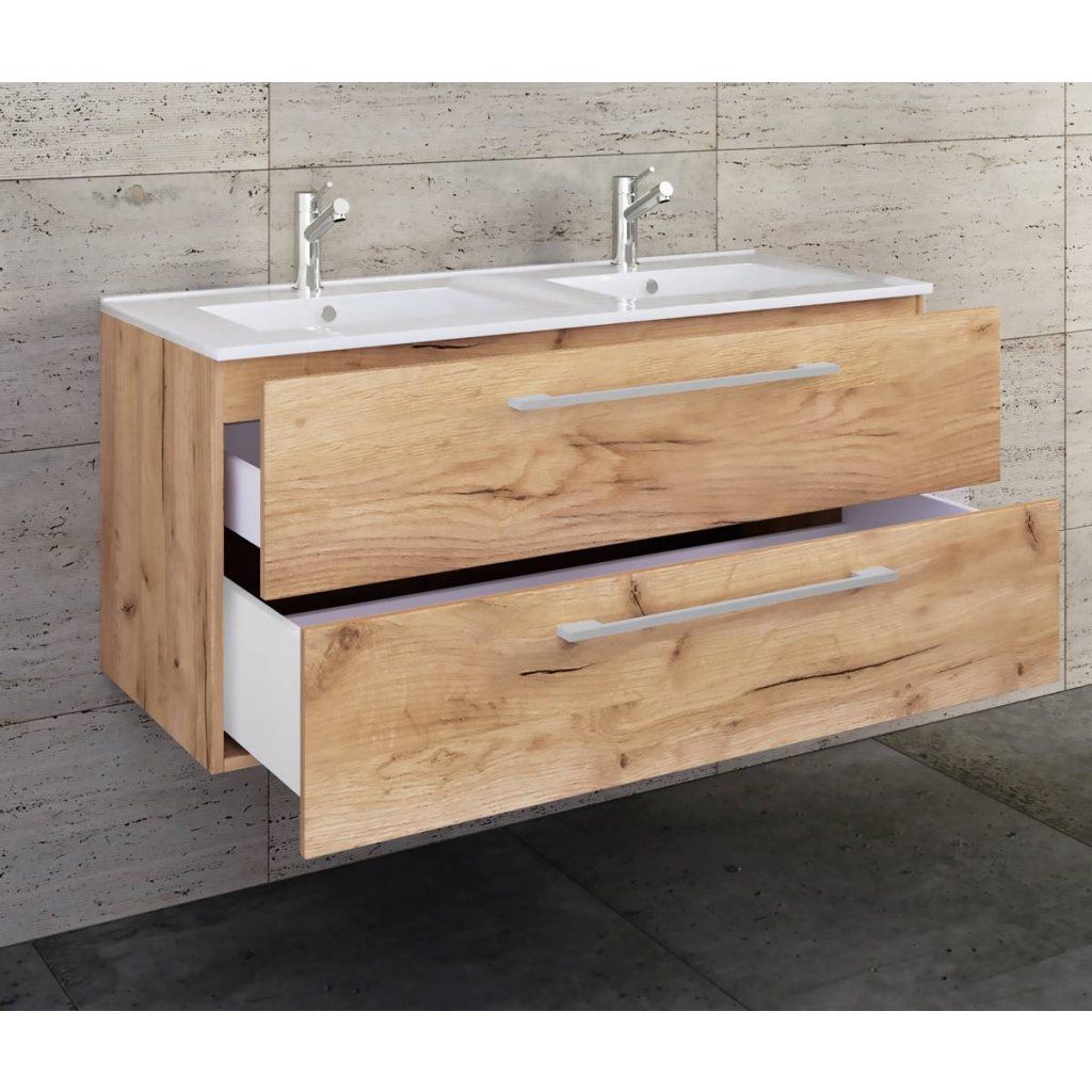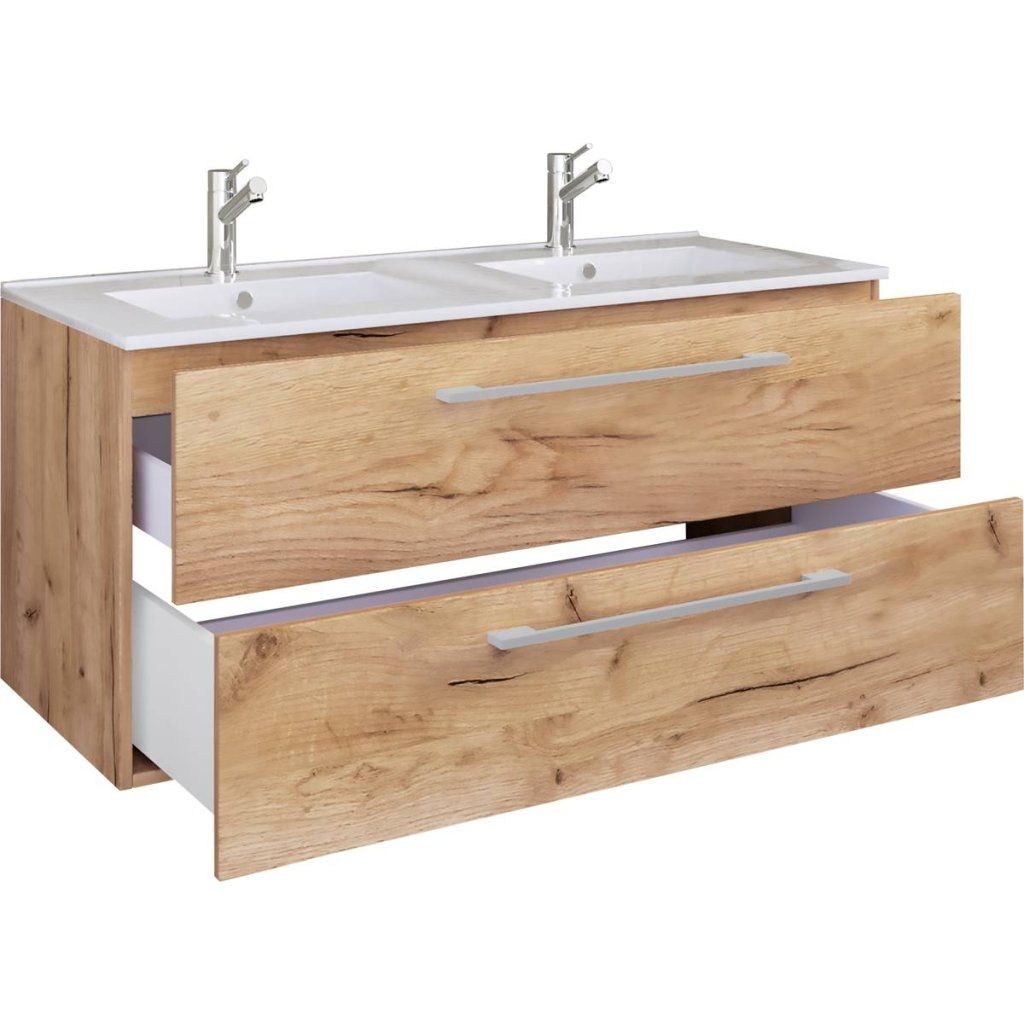 Súprava obsahuje: - 1x spodná skrinka s dvoma zásuvkami - 1x dvojité keramické umývadlo Súprava kúpeľňového nábytku VCM "Budasi" pozostáva zo spodnej skrinky s dvoma zásuvkami na stabilných kovových koľajničkách. Moderné dvojité umývadlo z masívnej keramiky slúži ako pútač pohľadov a dodá vašej kúpeľni výnimočnú atmosféru. Spodná skrinka pod umývadlo - Rozmery cca v. 51 x š. 112 x hl. 46 cm - Korpus s robustnou a necitlivou melamínovou povrchovou úpravou - Dve veľké zásuvky so stabilnými kovovými úchytkami Dvojité umývadlo: - Rozmery cca v. 17 x š. 110 x hl. 46 cm - Z robustnej keramiky Pozornosť venovaná detailom robí z kúpeľňového nábytku VCM niečo veľmi výnimočné. Umývadlo možno kombinovať s ďalším nábytkom zo série "VCM Budasi".Dodatočné parametre