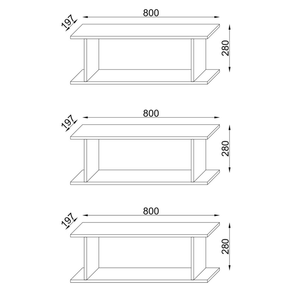 Sada 3 plávajúcich políc VCM "Sirola Maxi" - Táto závesná polica upúta pozornosť na každej stene - Možno ju používať samostatne a možno ju rozložiť - Možnosť vertikálnej alebo horizontálnej montáže jednotlivých políc - Mnoho otvorených priehradiek - K dispozícii v rôznych farbách - Rozmery cca: V 80 x Š 188 x H 20 cm - Rozmery každej police cca: V 28 x Š 80 x H 20 cm - Rozmery priehradky cca: 61 x 25 cm - Presah vpravo a vľavo: Is 8 cm - Replika drevenej konštrukcie - Dodávka obsahuje montážny materiál a návod na montážDodatočné parametre