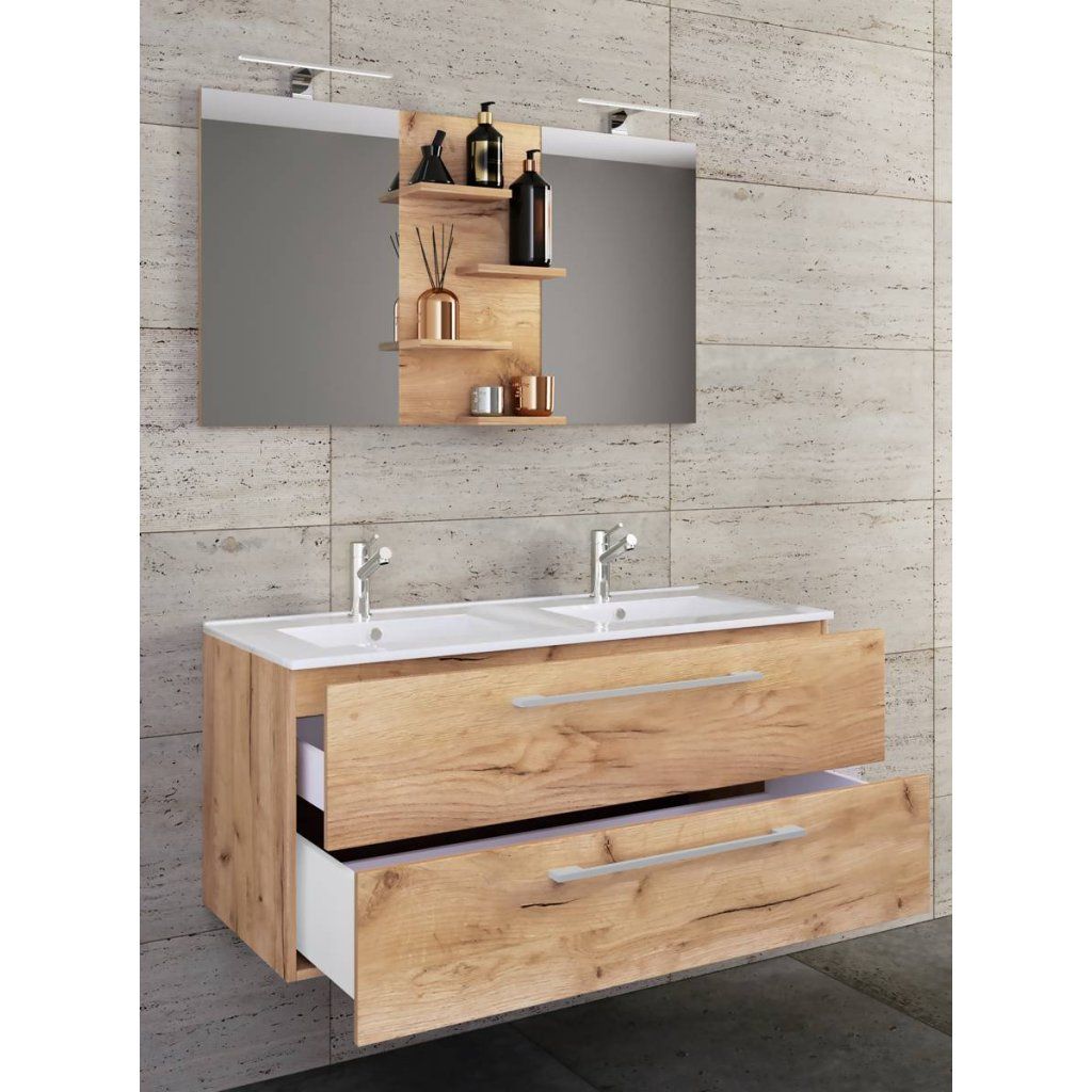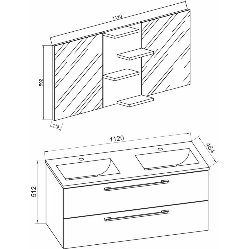 Súprava obsahuje: - 1x dolnú skrinku s dvoma zásuvkami - 1x dvojité keramické umývadlo - 1x zrkadlo so štyrmi odsadenými policami Súprava kúpeľňového nábytku VCM "Budasi" pozostáva z dolnej skrinky s dvoma zásuvkami na stabilných kovových koľajničkách a zrkadla so štyrmi odsadenými policami. Moderné dvojité umývadlo z masívnej keramiky slúži ako pútač pohľadov a dodá vašej kúpeľni výnimočnú atmosféru. Skrinka pod umývadlo - Rozmery cca v. 51 x š. 111 x hl. 46 cm - Korpus s robustným a necitlivým melamínovým povrchom - Dve veľké zásuvky s odolnými kovovými úchytkami Dvojité umývadlo: - Rozmery cca v. 17 x š. 110 x hl. 46 cm - Z robustnej keramiky Zrkadlo: - Rozmery v. 59 x š. 112 cm - Štyri poličky pre dokonalý poriadok Rozmery každej š. 20 cm x hl. 10 cm - Vyrobené z bezpečnostného skla ESG Nábytok je možné doplniť ďalším kúpeľňovým nábytkom "VCM Budasi & Badinos" a osvetlením "VCM Blino". Spoločnosť VCM sa od 70. rokov minulého storočia špecializuje na navrhovanie, výrobu a distribúciu nábytku s primeraným pomerom cena/výkon a zariadila milióny domácností.Dodatočné parametre