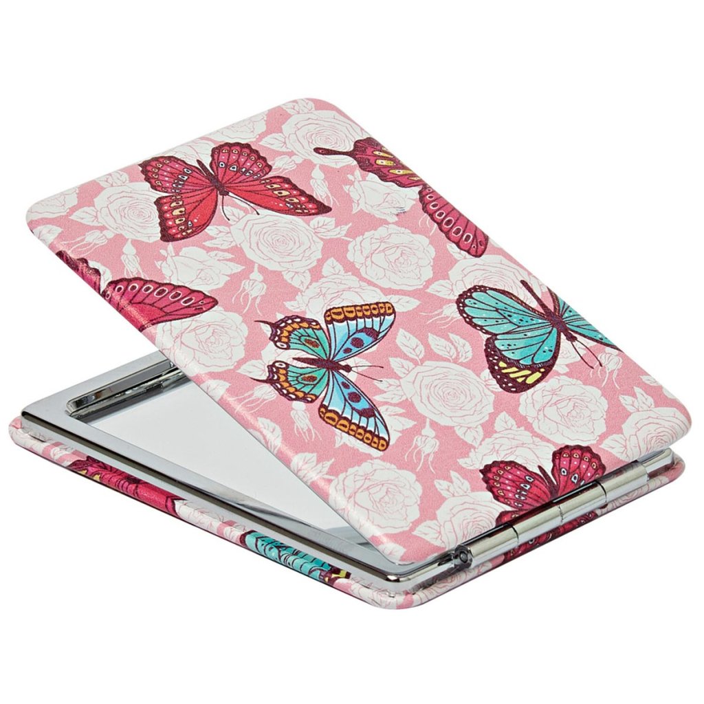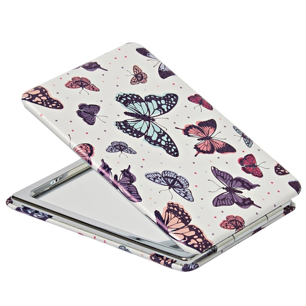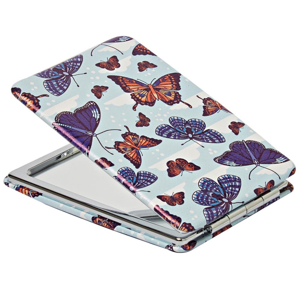 Jedno do každej kabelky: 3 skladacie zrkadlá s farebným motýľovým vzorom - jedna strana zväčšuje 2x. Skladacie, s 2 zrkadlami. Jedno z nich zväčšuje 2x. Krásne farby. Sada 3 ks.Dodatočné parametre