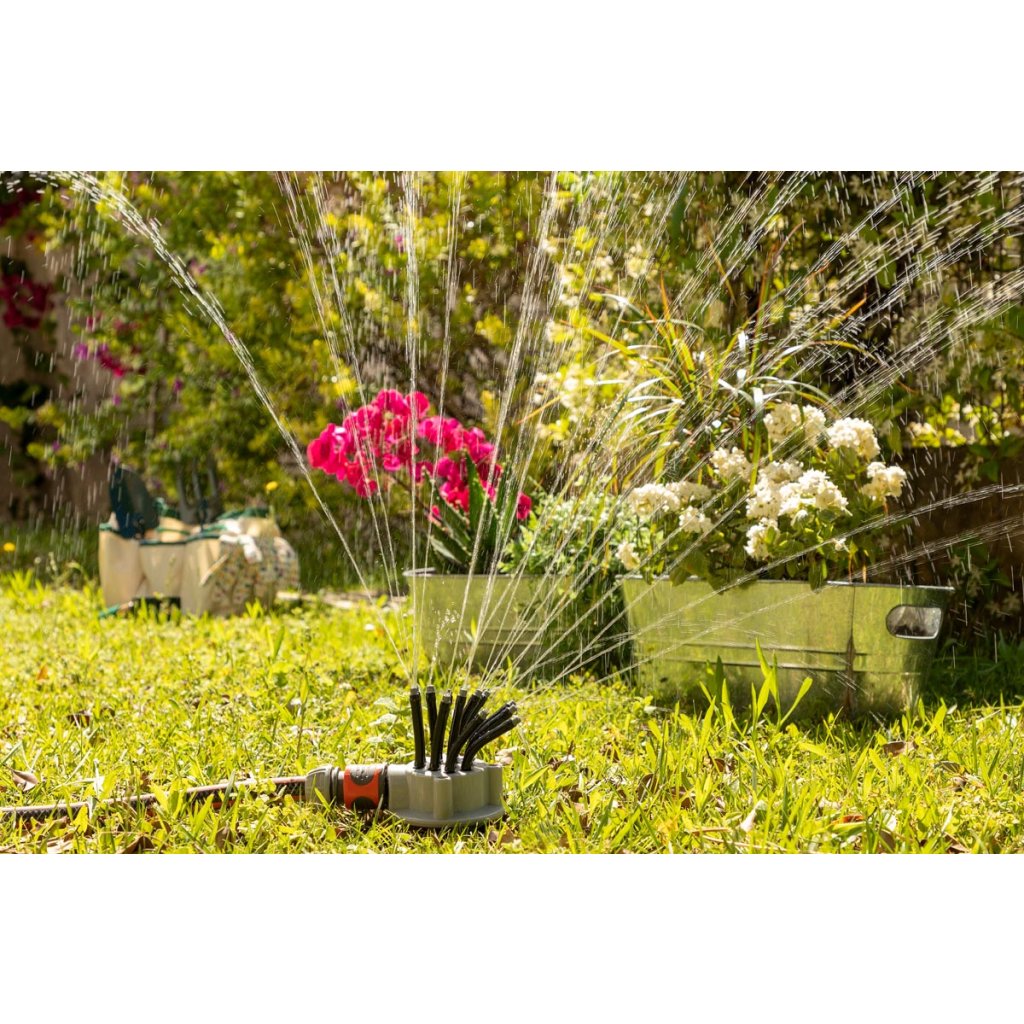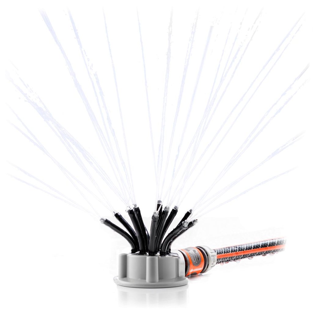 - Má 12 flexibilných a o 360° nastaviteľných trubiek s 3 otvormi. Jeho dosah sa pohybuje od 2 do približne 10 m² v závislosti od uhla zavlažovania. Každú flexibilnú rozprašovaciu dýzu možno individuálne nastaviť do požadovanej polohy.