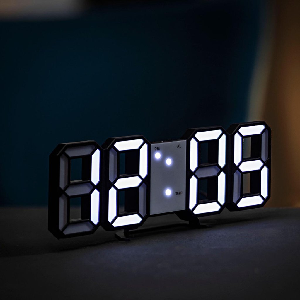 Jich elegantný dizajn vyzerá skvele na stole, polici alebo stene, najmä v minimalistických miestnostiach. Veľký displej LED so 7-segmentovými číslicami zaručuje skvelú čitateľnosť času, dátumu alebo teploty aj z väčšej vzdialenosti.