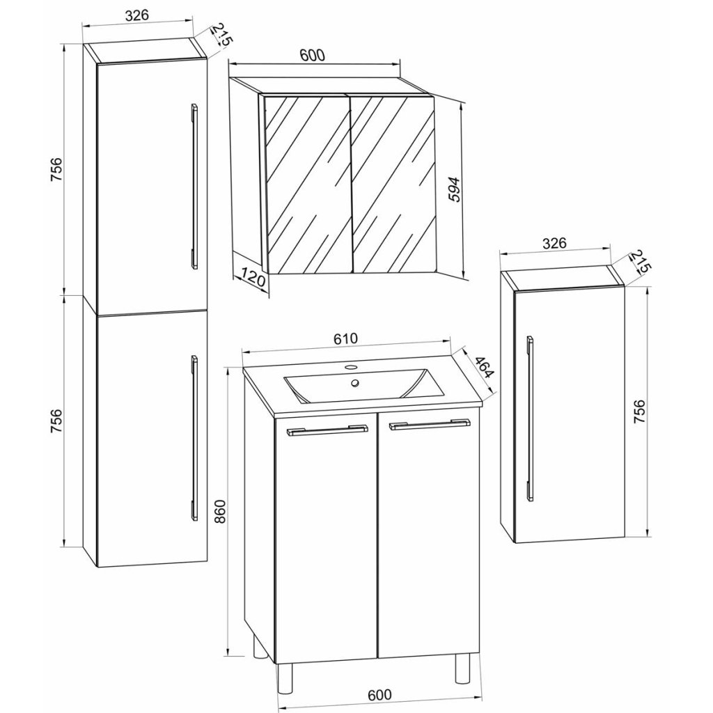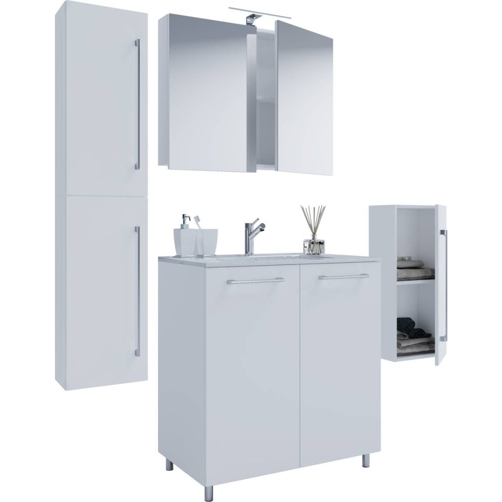 5-dielna umývadlová skrinka Badinos 2 dvierka 60 cm so zrkadlom, stredná a vysoká skrinka, biela