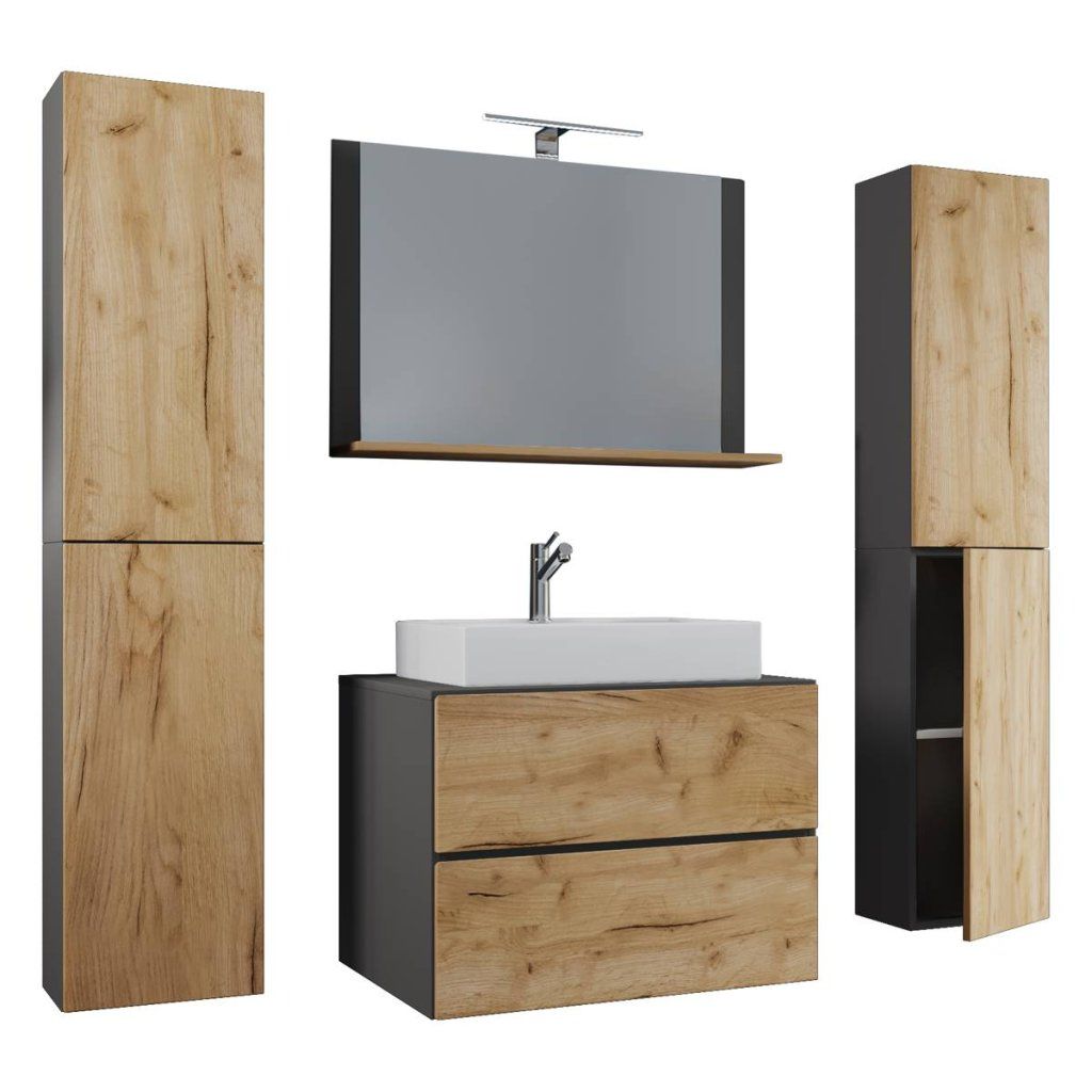 5-dielna umývadlová skrinka Lendas XL 80 cm so zrkadlom a 2 vysokými skrinkami, antracitová