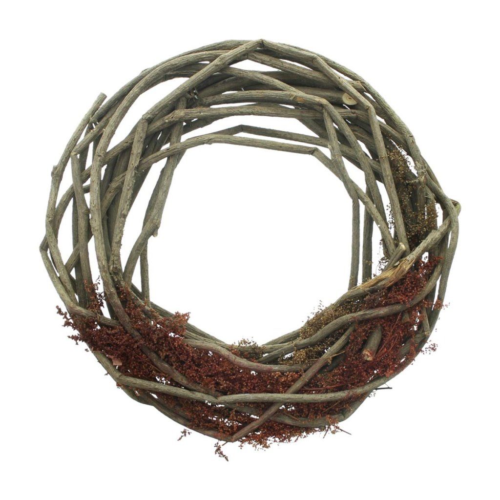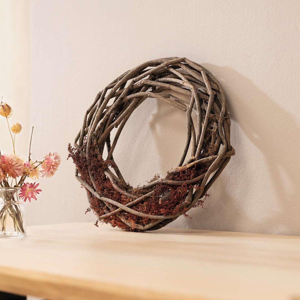 Červeno sfarbené vetvičky paliny dodávajú vencu jemný farebný akcent a nádych elegancie, vďaka čomu sa stane nápaditou dekoráciou na dvere, stenu alebo stôl.