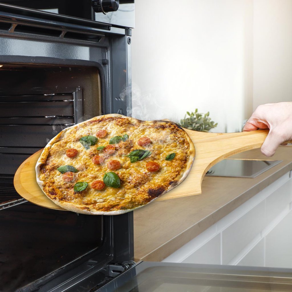 Táto doska na krájanie sa hodí na celú pizzu a veľmi uľahčuje krájanie a servírovanie. Bambus je tvrdý, odolný a neabsorbuje pachy. Použitie dosky na krájanie je teda veľmi všestranné.