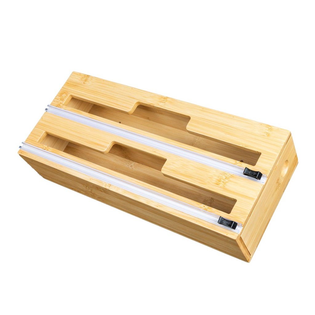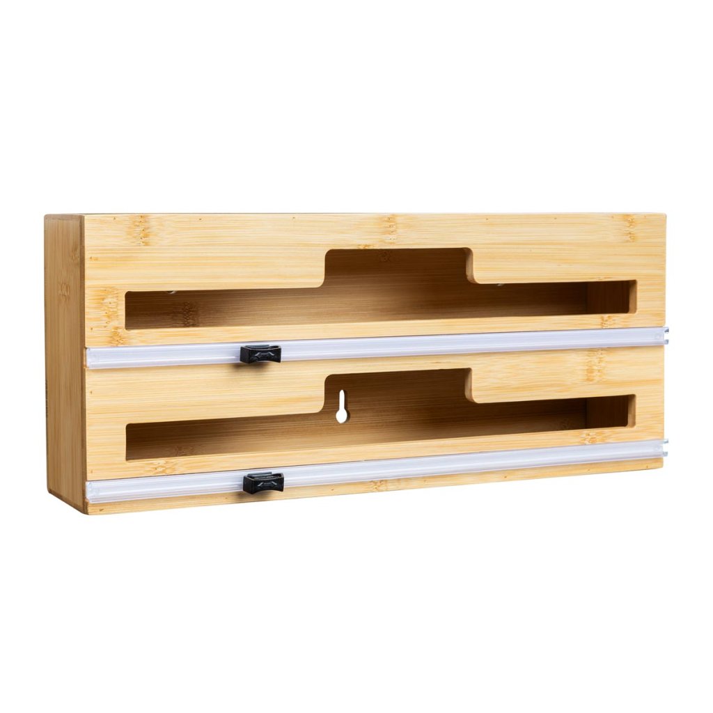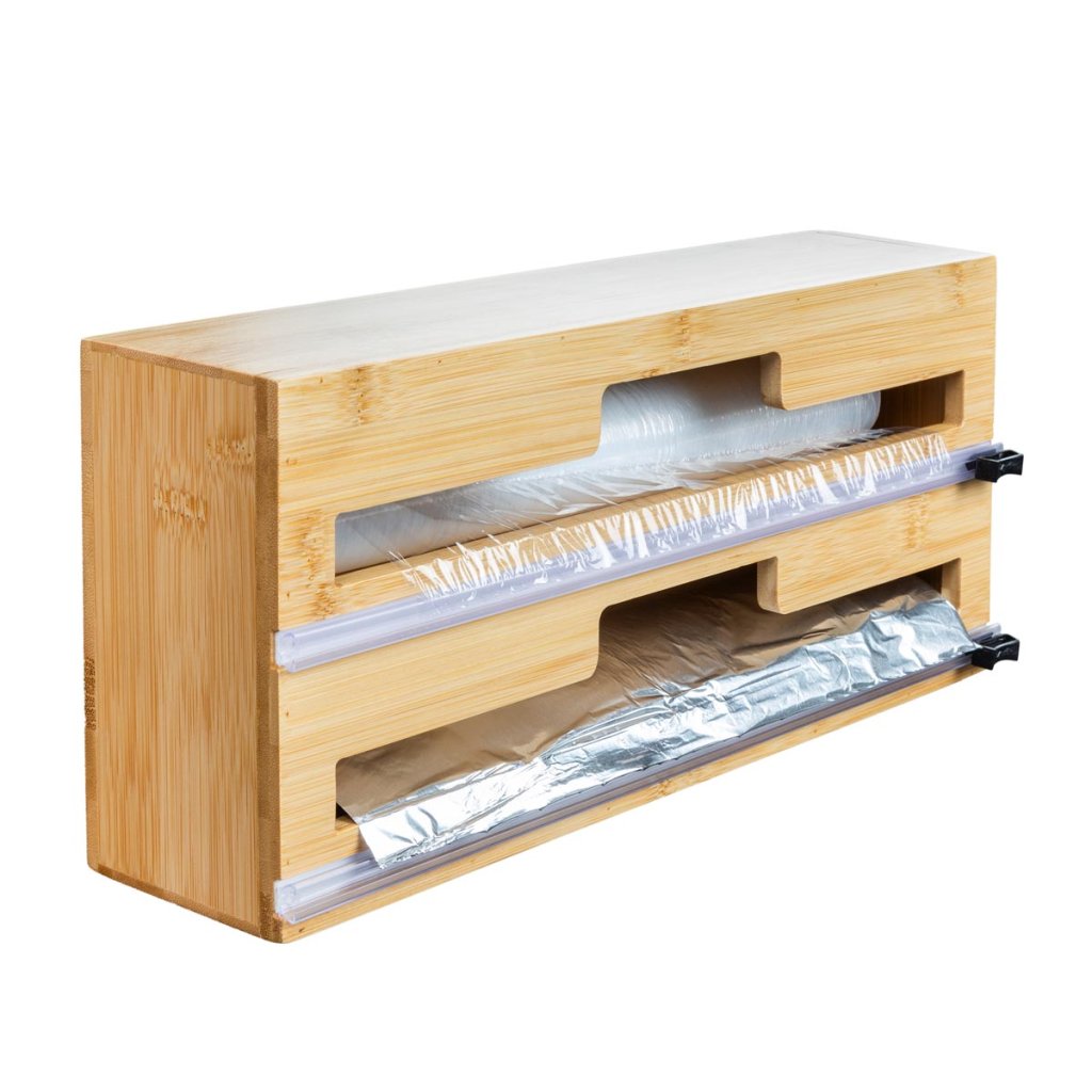 Výsuvný bambusový držiak na kuchynské rolky s rezačkou je praktickým kuchynským pomocníkom.