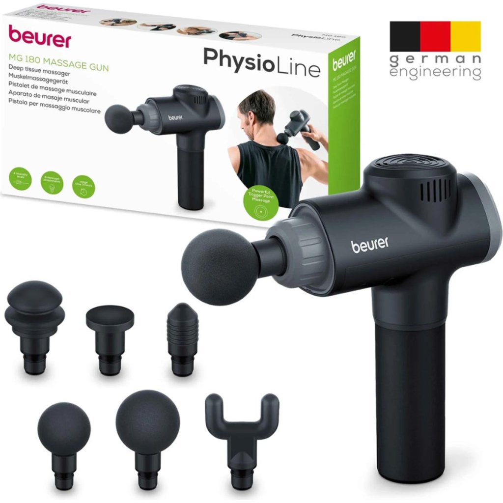 Pre čo najpresnejšie zacielenie masáže je pulzná masážna pištoľ Beurer MG180 dokonalým zariadením. Tvar pištole umožňuje aktivovať a regenerovať väčšinu svalov na tele. Ľahko si môžete meniť zo 6 masážnych nadstavcov a 4 úrovní intenzity pulzov. Na jedno nabitie získate až 3 hodiny plnohodnotnej masáže.