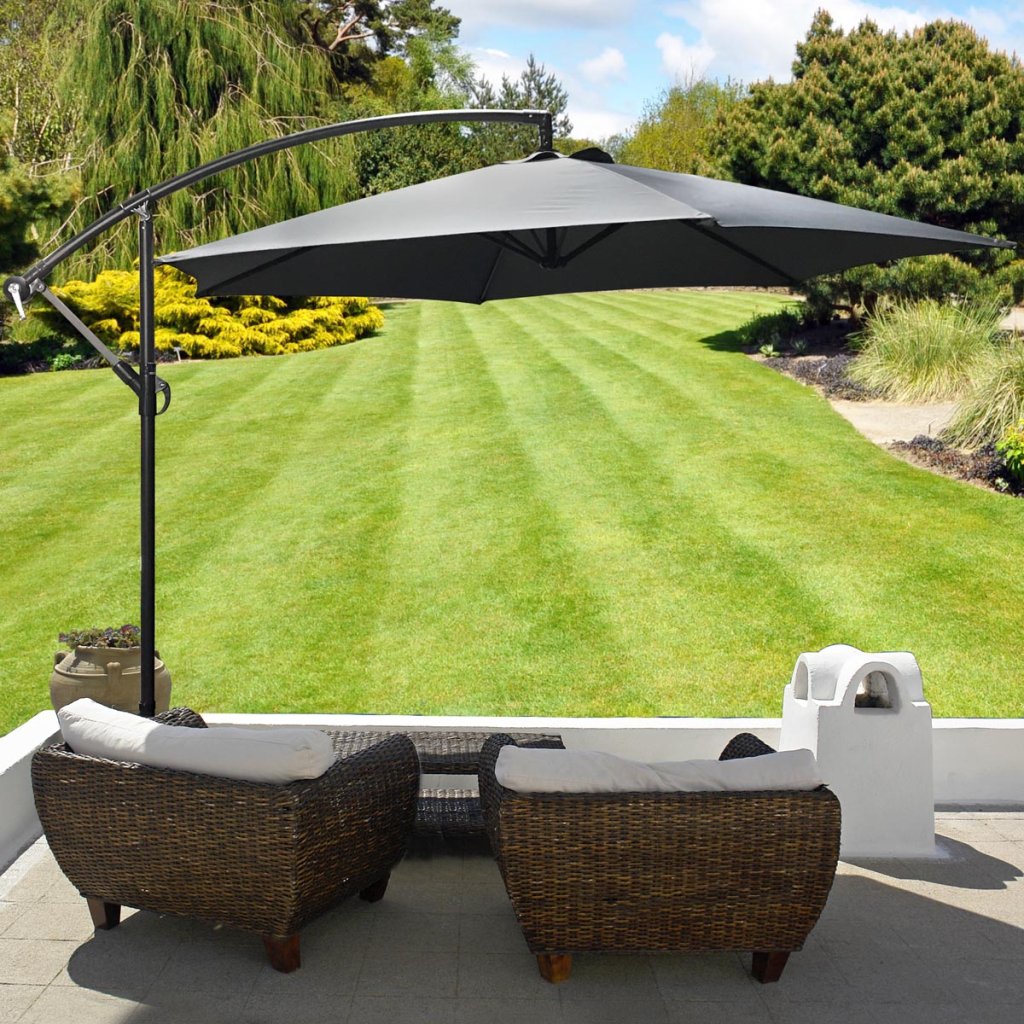 Elegantný závesný slnečník s bočnou nohou bude dokonalým doplnkom k bazénu, na terasu a do záhrady.
