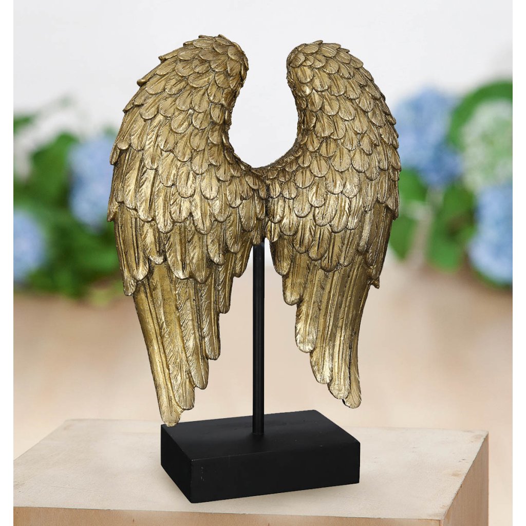 Krásne anjelské krídla v zlatej farbe s lesklým starožitným povrchom vnesú do každej miestnosti nebeskú náladu. Vhodné ako dekorácia do obývačky alebo pracovne, kde bude soška pôsobiť veľkolepým dojmom.Dodatočné parametre