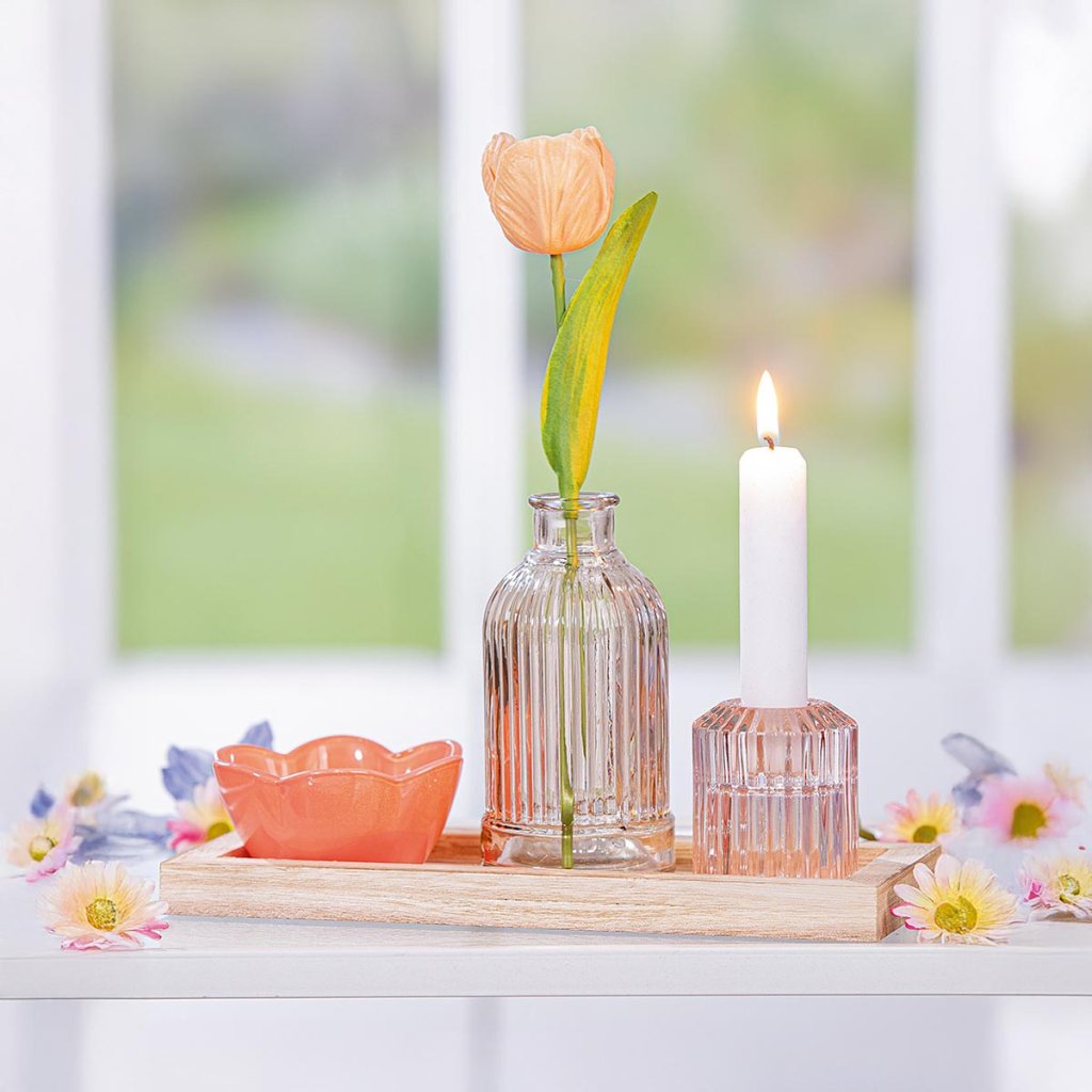 Sklenené dekorovacie prvky pôsobia vzdušne, elegantne a ľahko sa kombinujú s ďalšími bytovými doplnkami. Jednotlivé prvky možno ľubovoľne aranžovať a prispôsobiť aktuálnemu ročnému obdobiu alebo nálade interiéru.