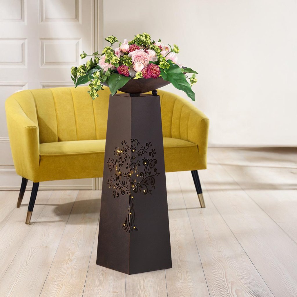 Vďaka kvalitnej kovovej konštrukcii je stĺpik pevný, stabilný a odolný voči bežnému opotrebovaniu, takže je vhodný do interiéru aj na kryté vonkajšie priestory. Kombinácia funkcie stojana na kvety a dekoratívneho prvku z neho robí univerzálnu kovovú dekoráciu, ktorá doplní obývaciu izbu, chodbu, terasu aj zimnú záhradu.