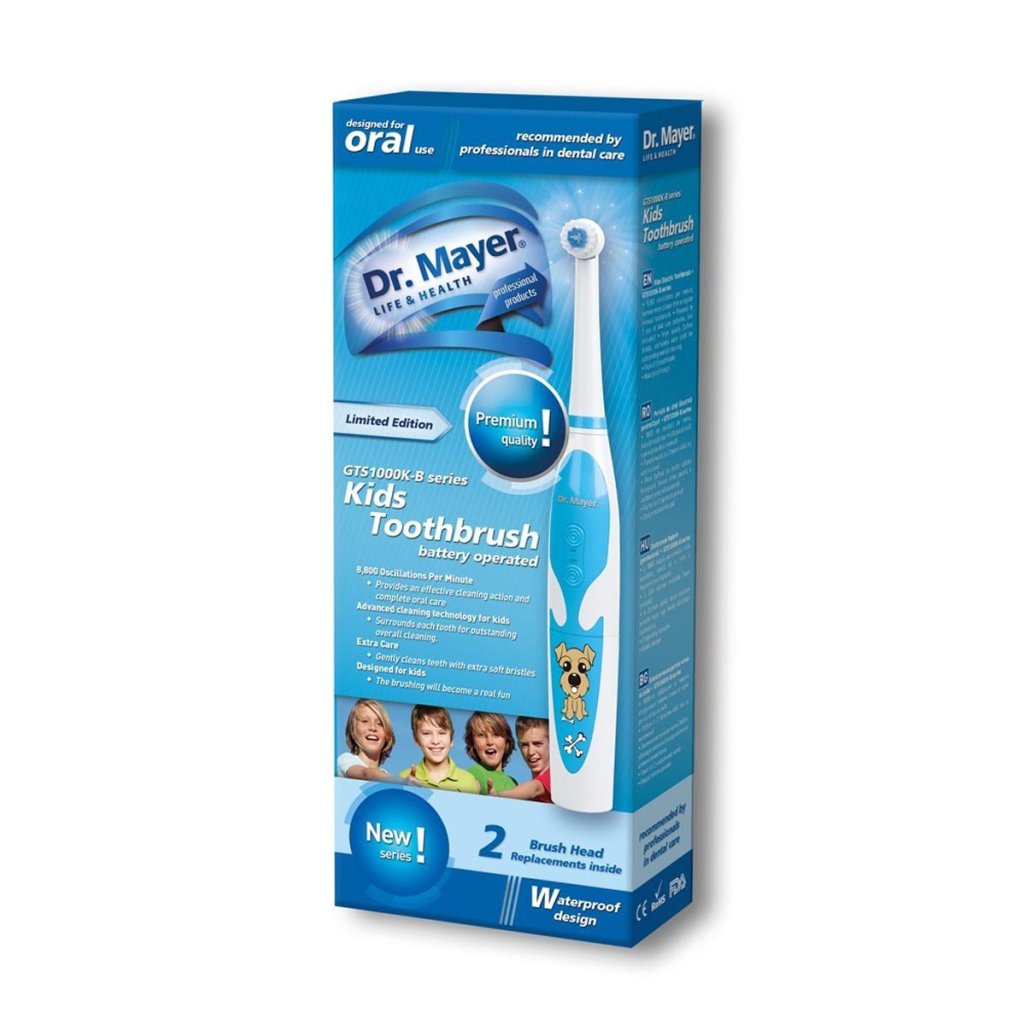 Detská zubná kefka DR. MAYER GTS1000K, navrhnutá špeciálne pre detské zuby, dokonale, rýchlo a šetrne odstraňuje zubný povlak, zvyšky jedla a nečistoty. Mimoriadne jemné štetinky zabezpečujú maximálne šetrnú starostlivosť o detské zuby a ďasná. Jedinečné čistenie ústnej dutiny pozostáva z dokonalých oscilačných pohybov až 8800 za minútu. Vodotesné telo. Napájanie: 2 x AAA batérie (nie sú súčasťou balenia).Dodatočné parametre