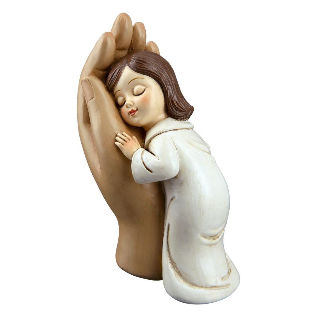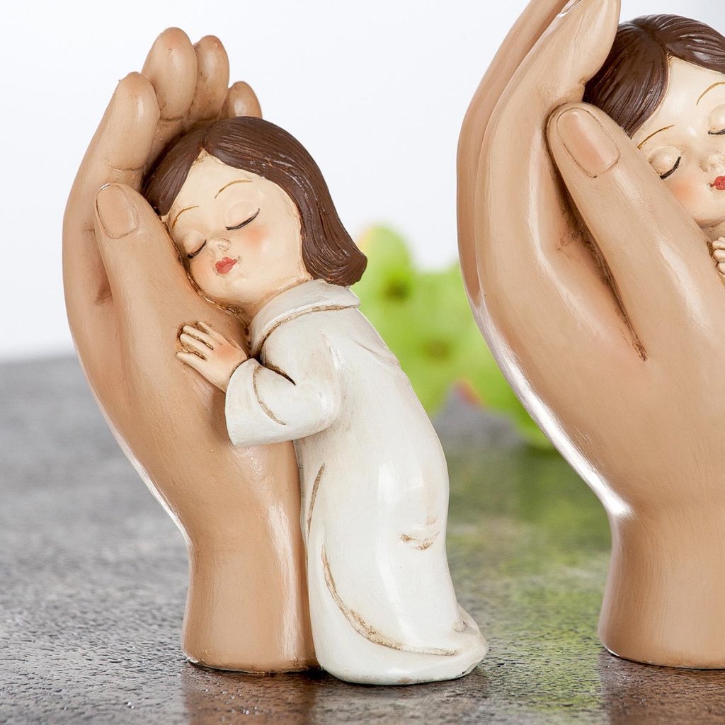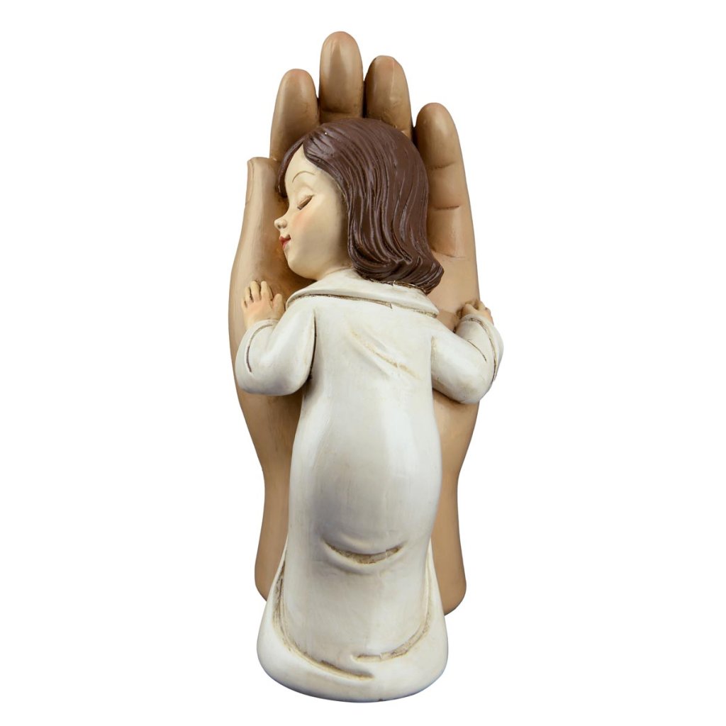 Pôvabná socha dievčaťa bezpečne spočíva na ochrannom ramene. Nádherný výjav, ktorý vyžaruje pokoj, silu a starostlivosť. Dekoratívna soška do domácnosti je nielen krásnou ozdobou, ale aj skvelým darčekom k svätému prijímaniu alebo krstu.Dodatočné parametre
