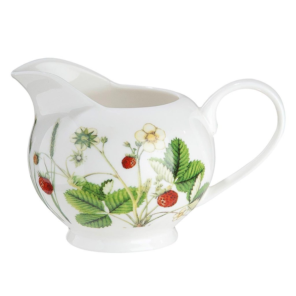 Štýlový konvička na mlieko v elegantnom vidieckom dizajne krásne doplní váš čajový a kávový servis. Jemný motív lúčnych kvetov a lesných jahôd pôsobí sviežo, romanticky a harmonicky ladí s ostatným porcelánovým riadom z rovnakej kolekcie.