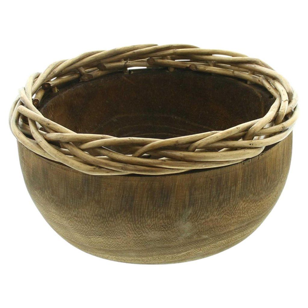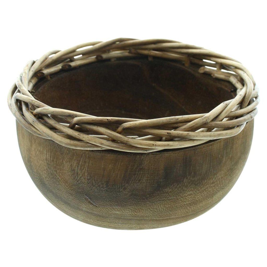 Drevená miska s pleteným okrajom, okrúhla