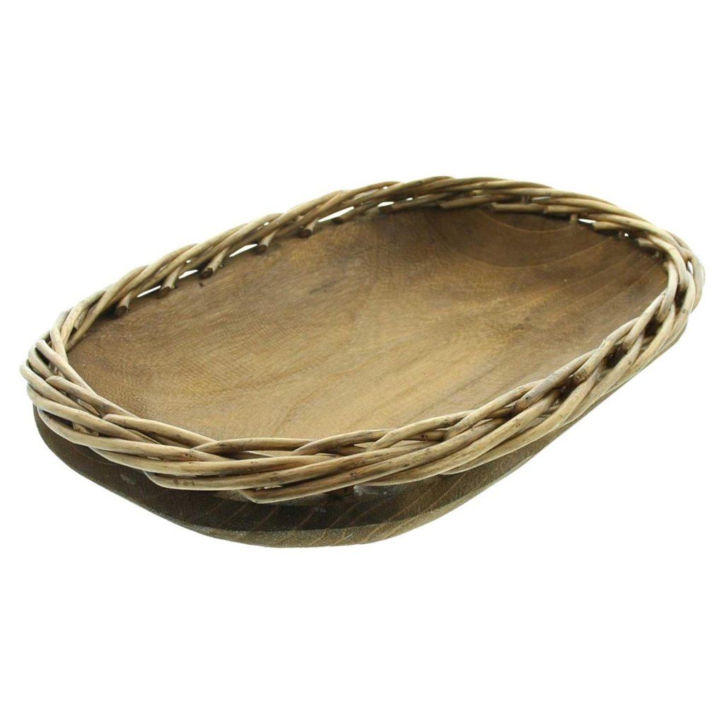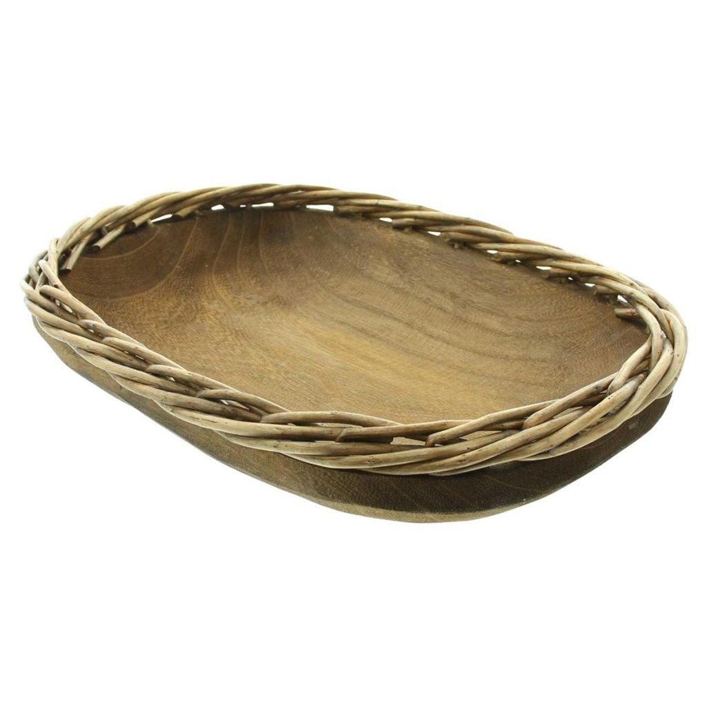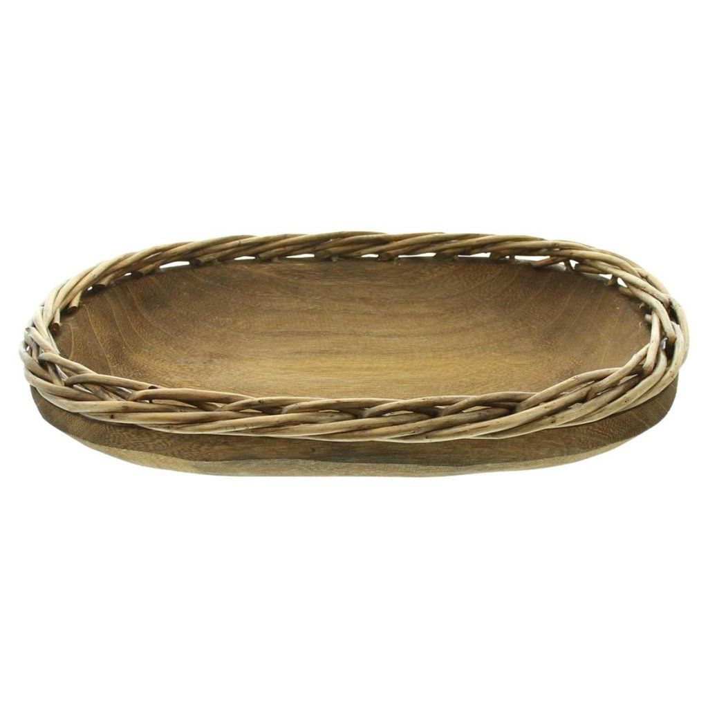 Objavte oválnu misu, ktorá spája prírodné materiály s precíznym remeselným spracovaním. Táto elegantná drevená dekorácia je vyrobená z hnedo moreného dreva paulovnie a doplnená detailom z prútia, ktorý jej dodáva jedinečný vzhľad.