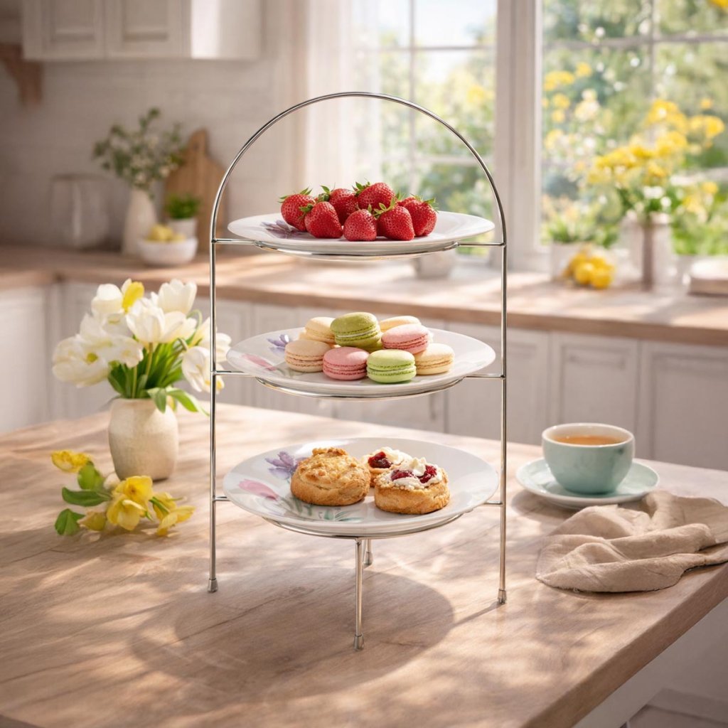 Vneste do svojho stolovania štýl a praktickosť s týmto trojúrovňovým pekáčom, ktorý je ideálny na elegantné servírovanie ovocia, dezertov, koláčov alebo predjedál.