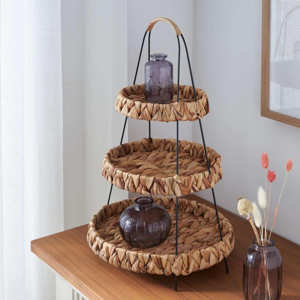 Tento štýlový kúsok je nielen praktický na servírovanie ovocia, sladkostí alebo drobností, ale funguje aj ako výrazná dekorácia, ktorá zútulní každý interiér. Kombinácia prírodného vzhľadu a kovových prvkov dodáva etáži moderný a nadčasový charakter.