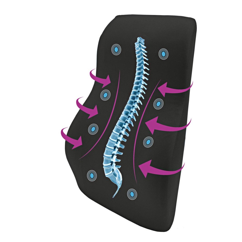 Anatomicky tvarovaný bedrový vankúš okamžite zlepšuje držanie tela a zabraňuje bolestiam chrbta. Podporuje chrbticu v bedrovej oblasti a výrazne zmierňuje tlak na medzistavcové platničky. Odnímateľné gélové vankúšiky na vyhrievanie alebo chladenie zabezpečujú vyváženú klímu bez nahromadenia tepla. Reguluje držanie tela. Predchádza bolestiam chrbta. S gélovými vankúšikmi na zahrievanie + chladenie. Odnímateľný poťah.Dodatočné parametre