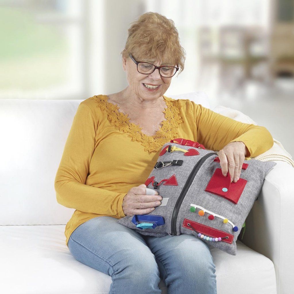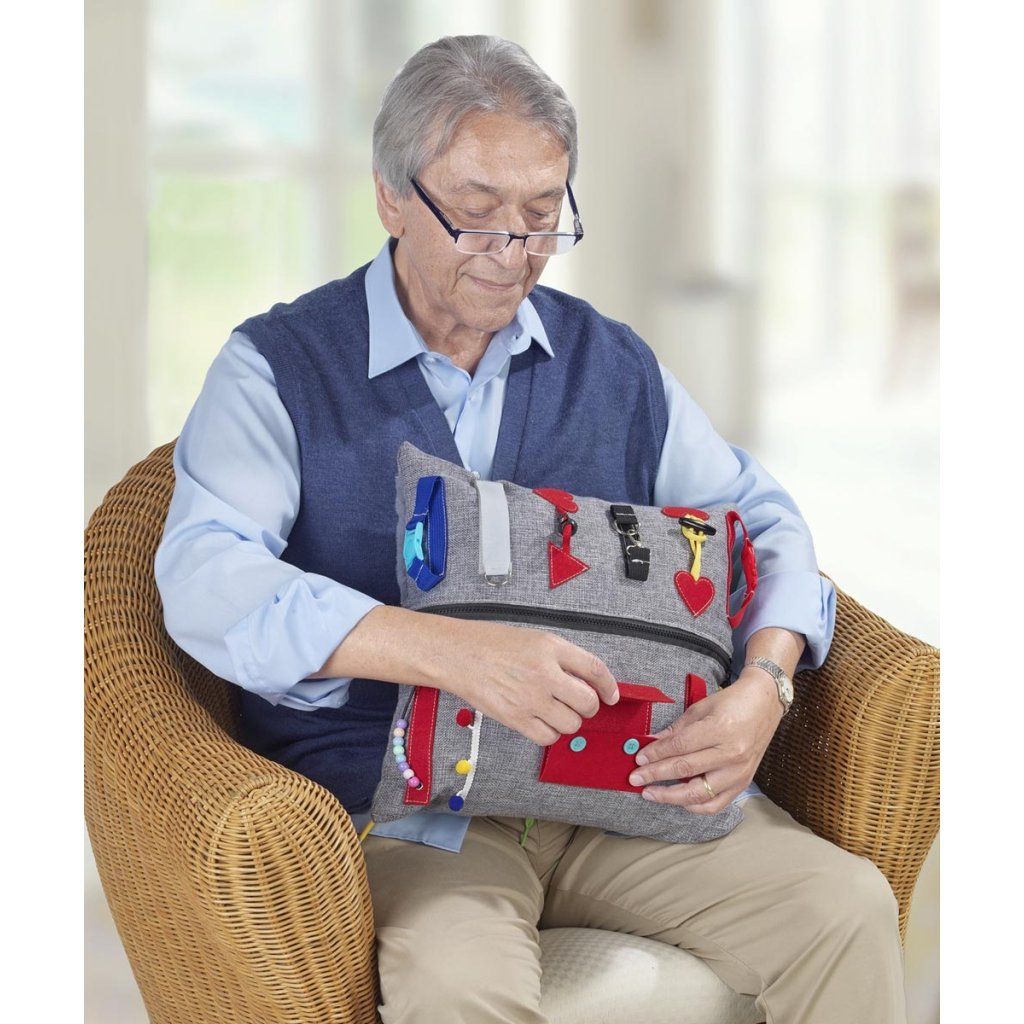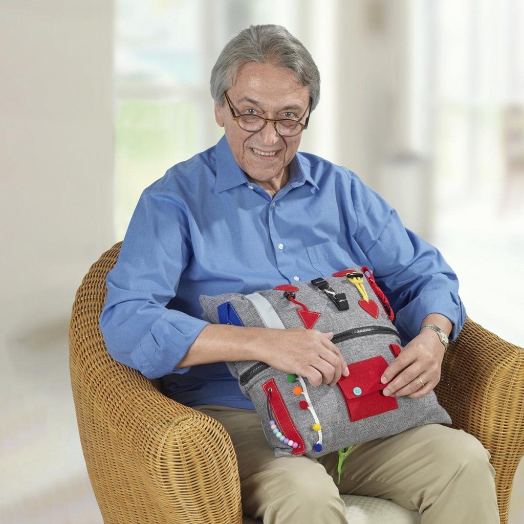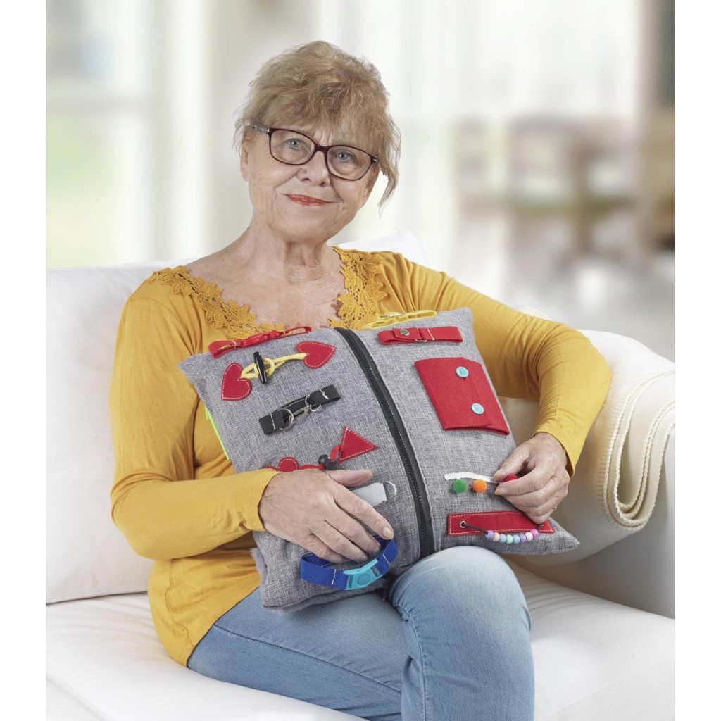 Tento špeciálny poduška pre nepokojné ruky je navrhnutá ako praktická pomôcka na upokojenie a aktivizáciu mysle. Je ideálny ako jedna z pomôcok pre seniorov s demenciou, ktorá pomáha zamestnať ruky a prináša pocit bezpečia a pokoja.