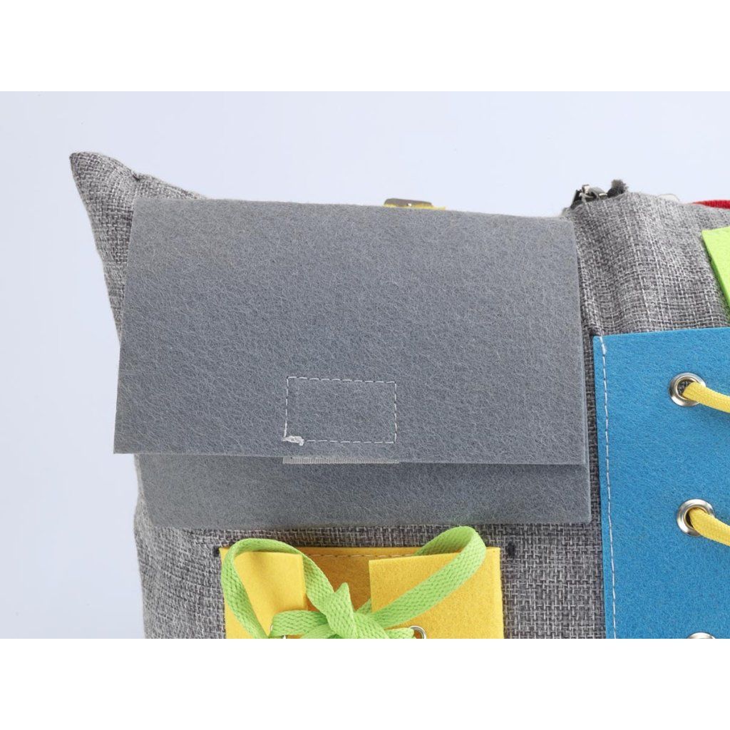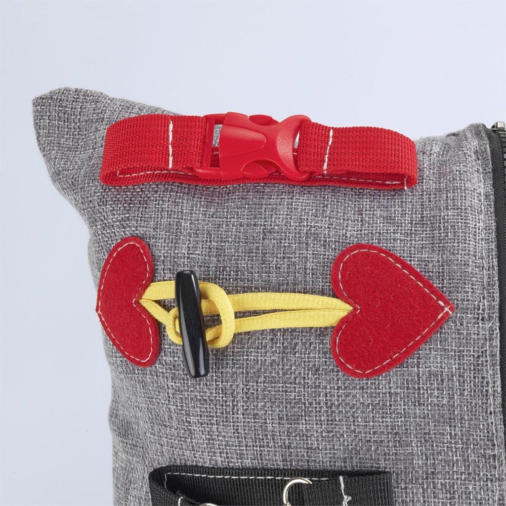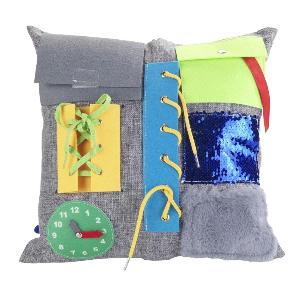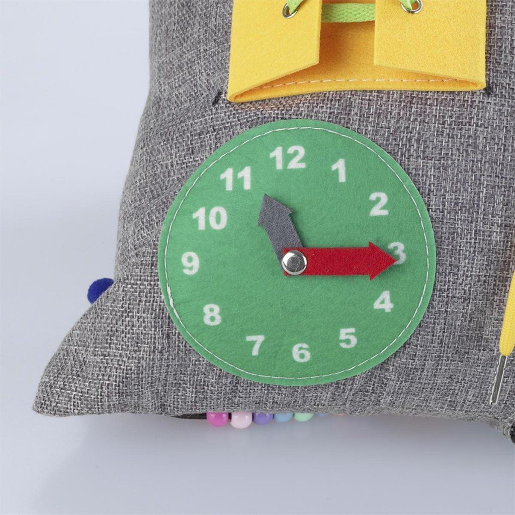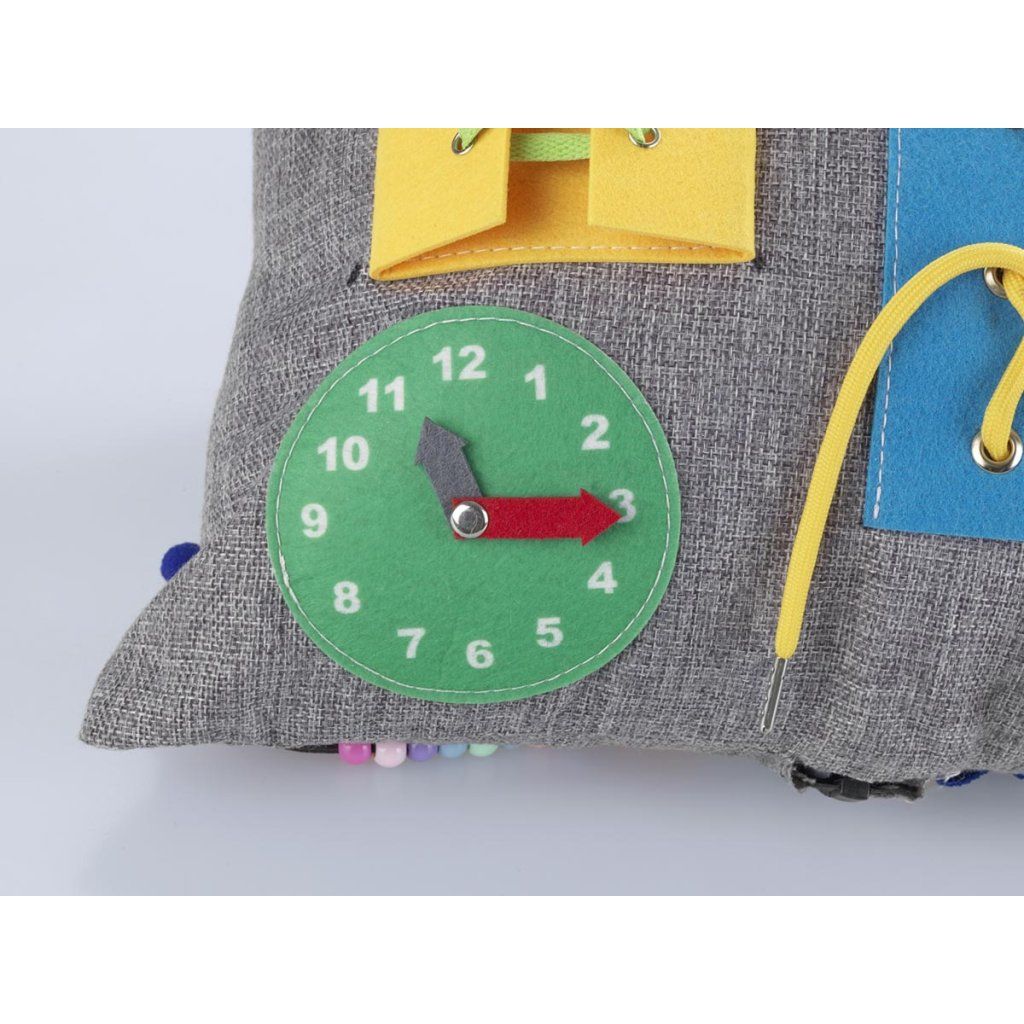 Vankúš obsahuje rôzne interaktívne prvky, ako sú zipsy, gombíky, stuhy alebo časti látky s rôznymi textúrami. Tieto aktivity podporujú motorické zručnosti rúk, koordináciu a jemné vnímanie. Pravidelné používanie môže pomôcť znížiť nepokoj, stres a úzkosť a zároveň prirodzene stimulovať zmysly.