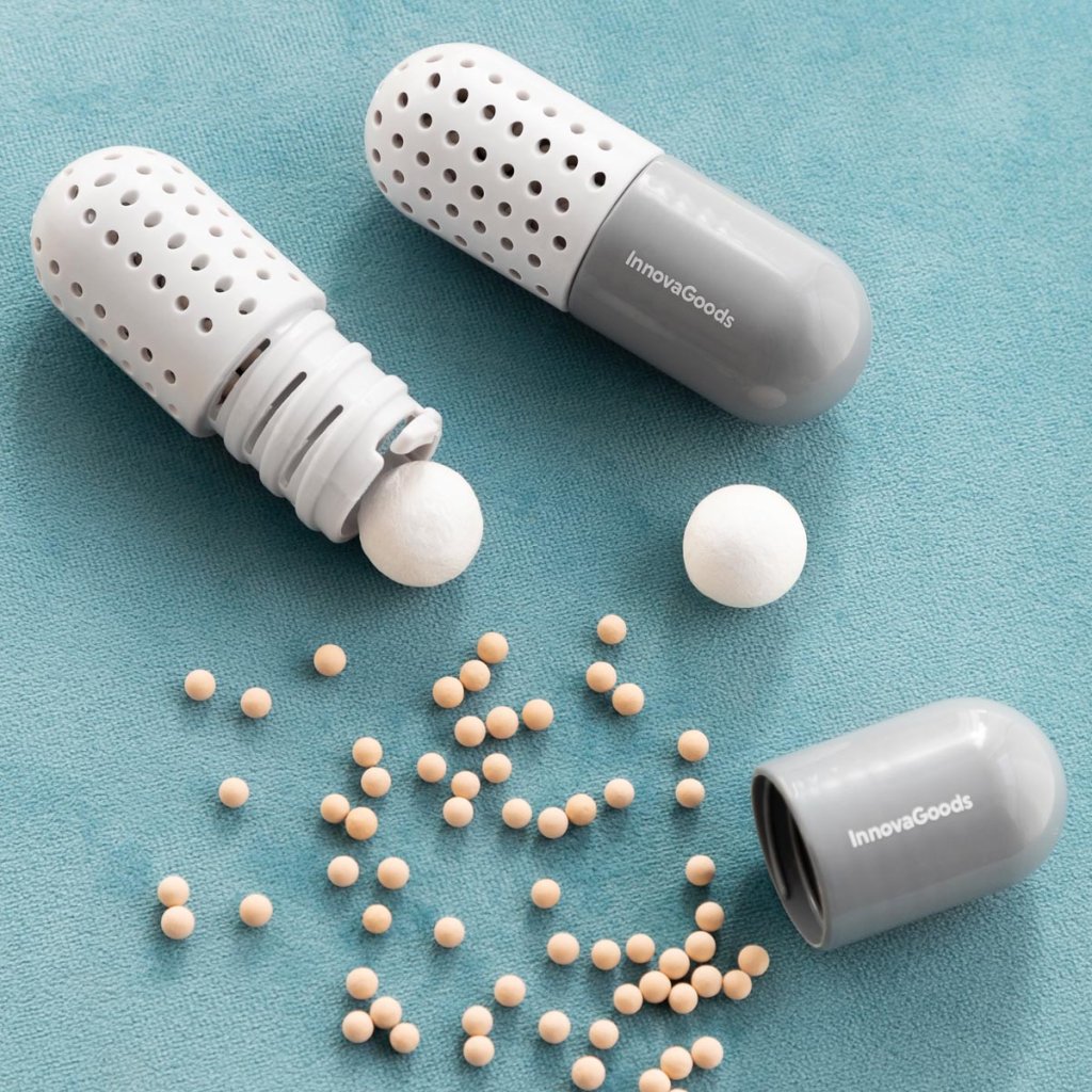 Tieto 2 kapsule absorbujú vlhkosť, dezinfikujú a uvoľňujú príjemnú vôňu, ktorá zaručuje sviežosť a čistotu.