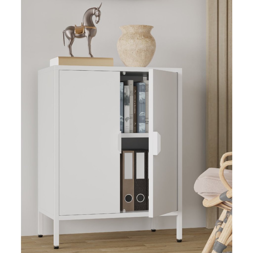 Komoda VCM "Flokas" sa vďaka svojmu nadčasovému dizajnu hodí takmer do každej miestnosti. Dvoje otočných dvierok a dve priehradky za nimi zabezpečujú požadovaný poriadok a dostatok úložného priestoru.