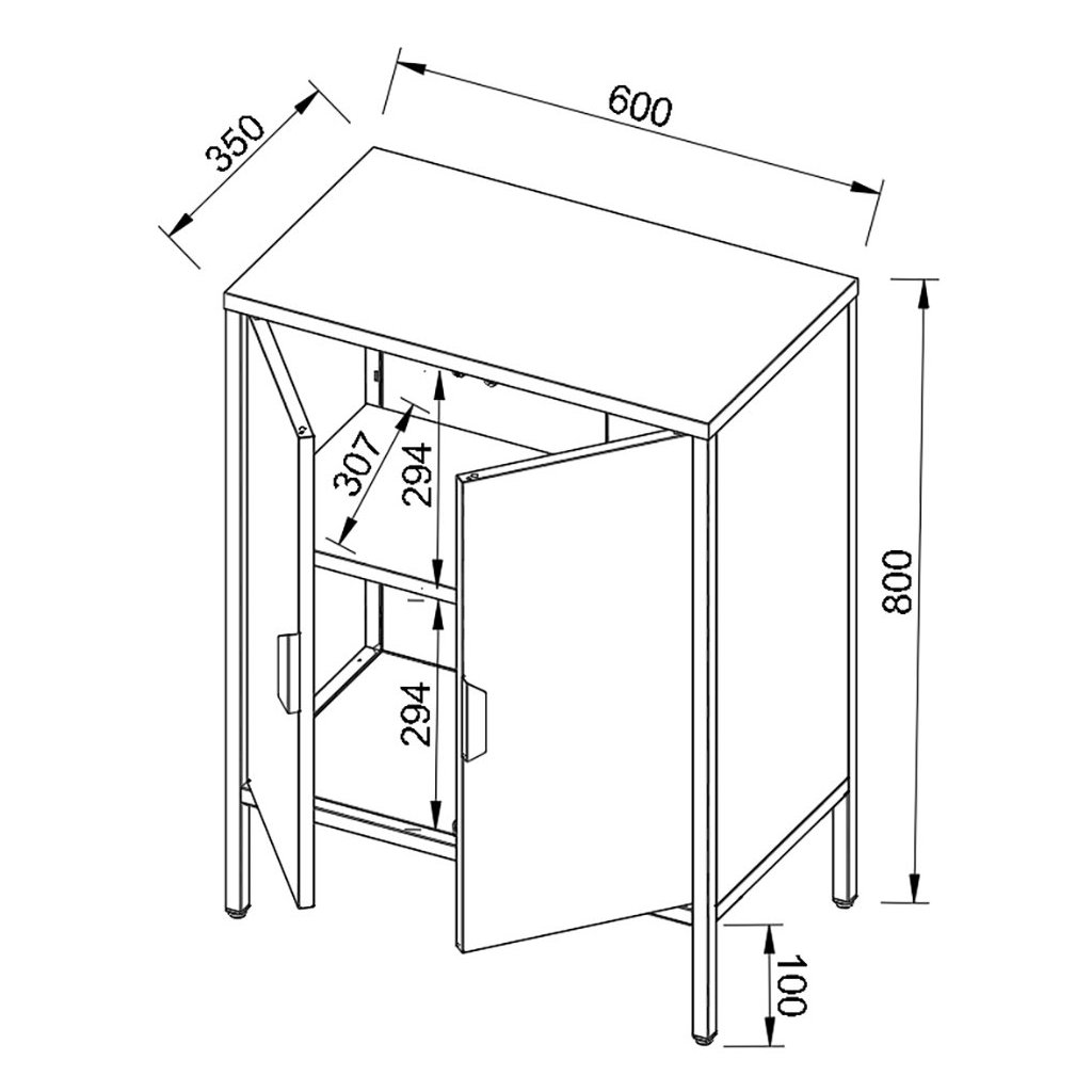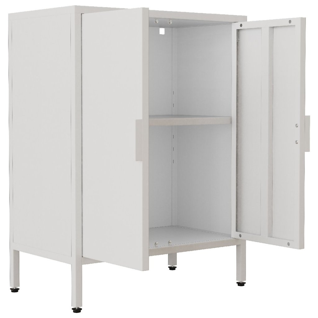 Dizajnér skonštruoval komodu výhradne z ocele, čoho výsledkom je nadčasový vzhľad v industriálnom štýle. Všetky nohy sú výškovo nastaviteľné, aby sa vyrovnali nerovnosti podlahy. Komodu možno doplniť ďalším nábytkom zo série "VCM Flokas".