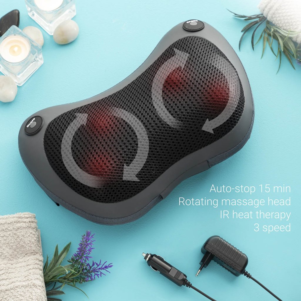 Tento elektrický a ergonomický Shiatsu vankúšik je vhodný na celkovú masáž a je možné ho použiť na akúkoľvek časť tela (krk, chrbát, bedrovú oblasť, nohy atď.). Je ideálny na boj proti stresu, poskytuje relaxačnú a regeneračnú masáž.