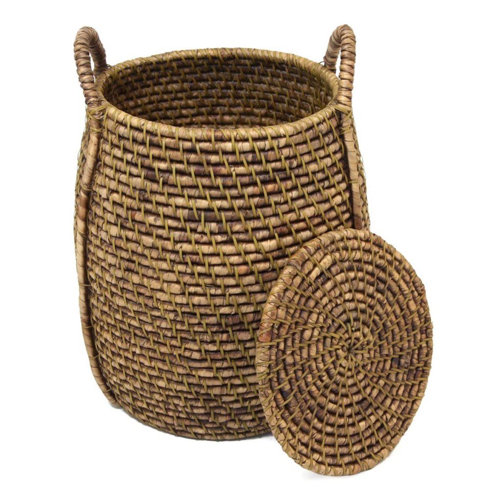 Tento praktický koš na špinavú bielizeň zaujme svojím exotickým dizajnom z Ďalekého východu. Kombinácia morskej trávy, vodného hyacintu a bambusových prúžkov vytvára originálny a dekoratívny vzhľad, ktorý oživí každý interiér.