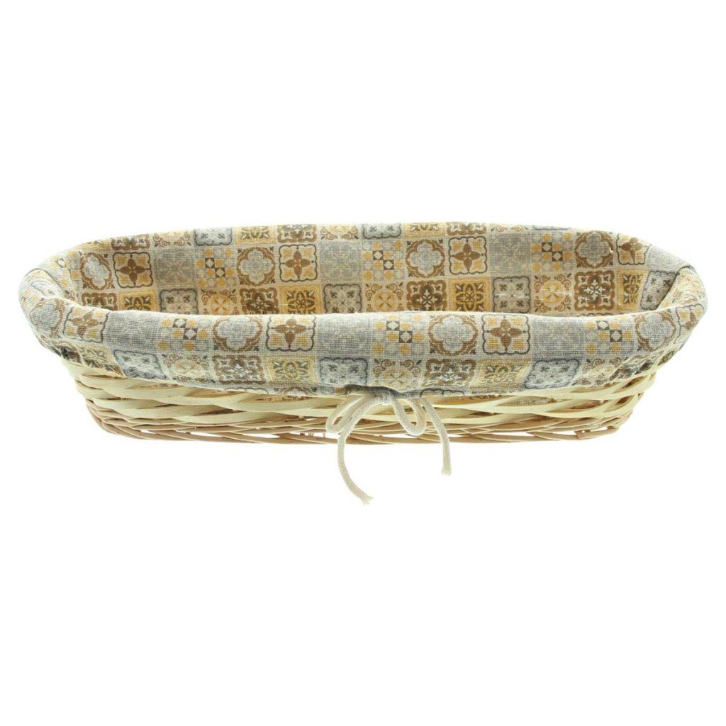 Tkaninová vložka s atraktívnym mozaikovým vzorom (50 % bavlna, 50 % polyester) dodáva košu štýlový vzhľad a uľahčuje jeho údržbu. Praktická bavlnená šnúrka umožňuje jednoduché uzatváranie a manipuláciu.