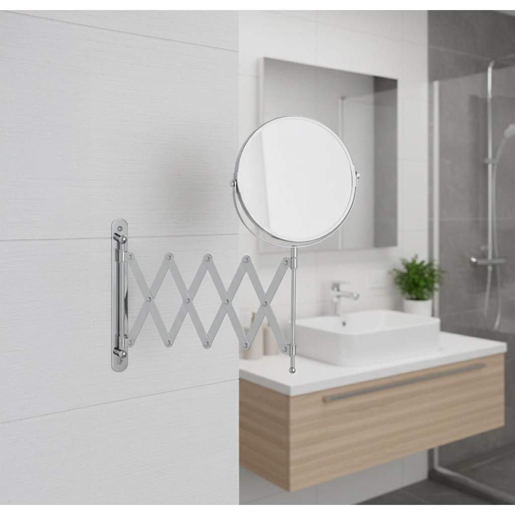 Zrkadlo je otočné a výškovo nastaviteľné, takže si ho môžete prispôsobiť presne podľa svojich potrieb. Vďaka chrómovej povrchovej úprave sa skvele hodí do každej modernej kúpeľne.