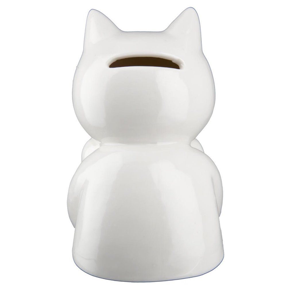 Roztomilá pokladnička na mince v tvare usmievavej mačky je praktickým a dekoratívnym doplnkom každého interiéru. Táto pokladnička vyrobená z kvalitnej keramiky slúži nielen na ukladanie úspor, ale aj ako štýlová dekoratívna figúrka. Hravá figúrka mačky v lesklej bielej farbe poteší deti aj dospelých a je ideálna ako darček.Dodatočné parametre