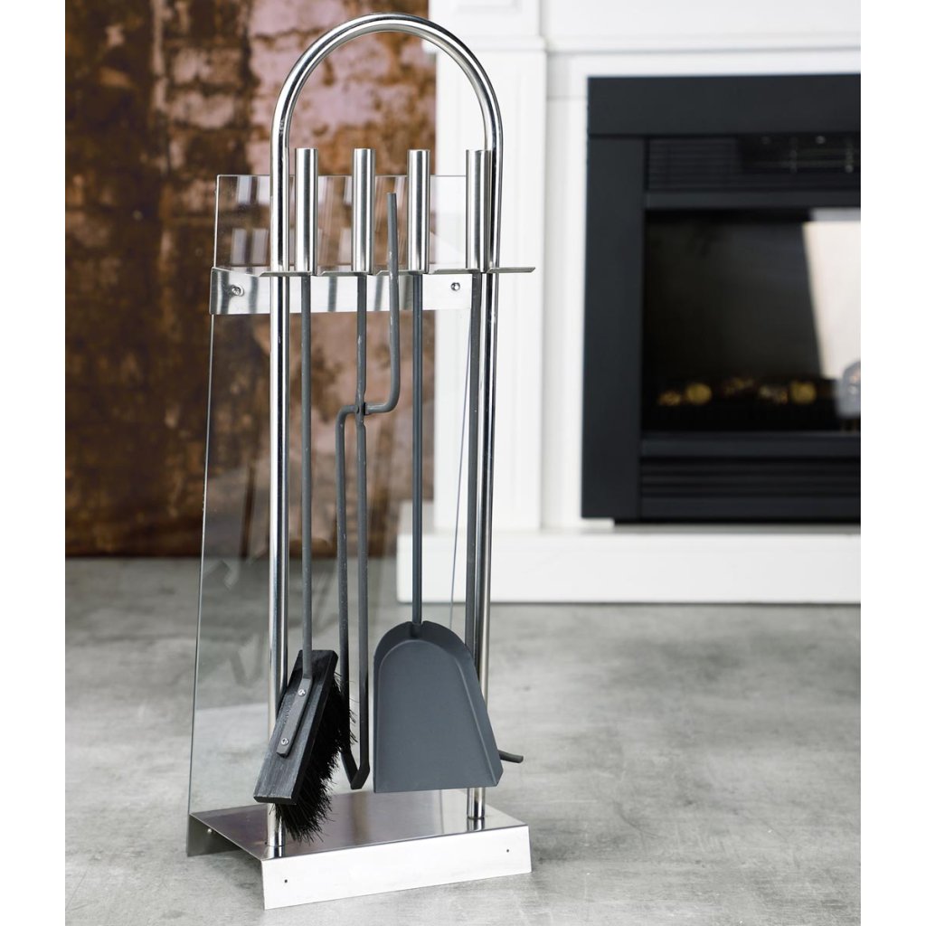 Rúčky sú vyrobené z nehrdzavejúcej ocele, zadná strana je z bezpečnostného skla, skrátka štýlové krbové náradie!