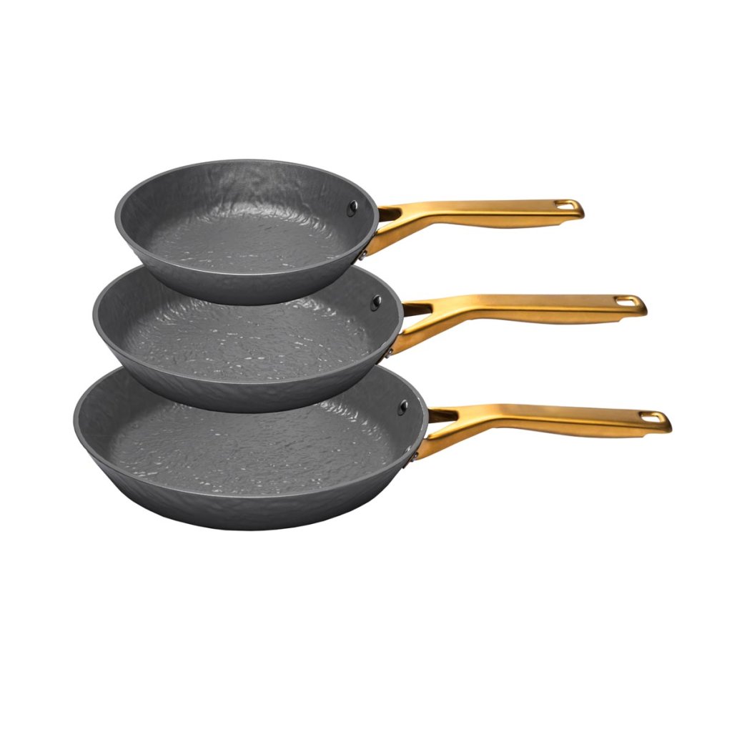Táto prémiová sada panvíc je ideálnou voľbou pre každého, kto chce variť zdravšie, efektívnejšie a s dokonalými výsledkami. Nepriľnavé panvice s jedinečnou lávovou štruktúrou zaisťujú rovnomerné rozloženie tepla a zabraňujú pripáleniu jedla.