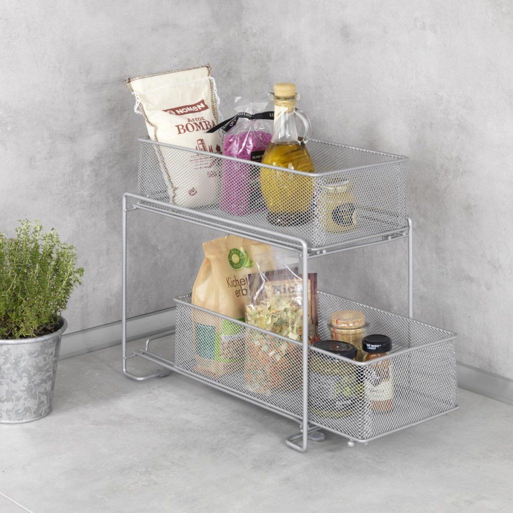 Praktická kuchynská polica s 2 úrovňami je ideálnym riešením pre prehľadné usporiadanie priestoru a lepšie využitie miesta v domácnosti. Tento kovový kuchynský organizér ponúka dostatok miesta na koreniny, čistiace prostriedky, náčinie alebo iné drobnosti, ktoré chcete mať vždy po ruke.