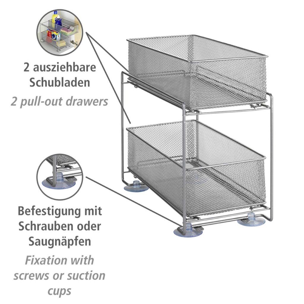 Vďaka stabilným prísavkám možno poličku ľahko upevniť bez vŕtania, takže je praktickým pomocníkom do kuchyne, kúpeľne a iných miestností. Skvele sa hodí aj ako organizér pod drez, ktorý pomáha udržiavať poriadok v čistiacich prostriedkoch a príslušenstve.