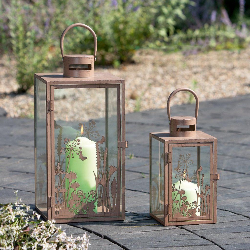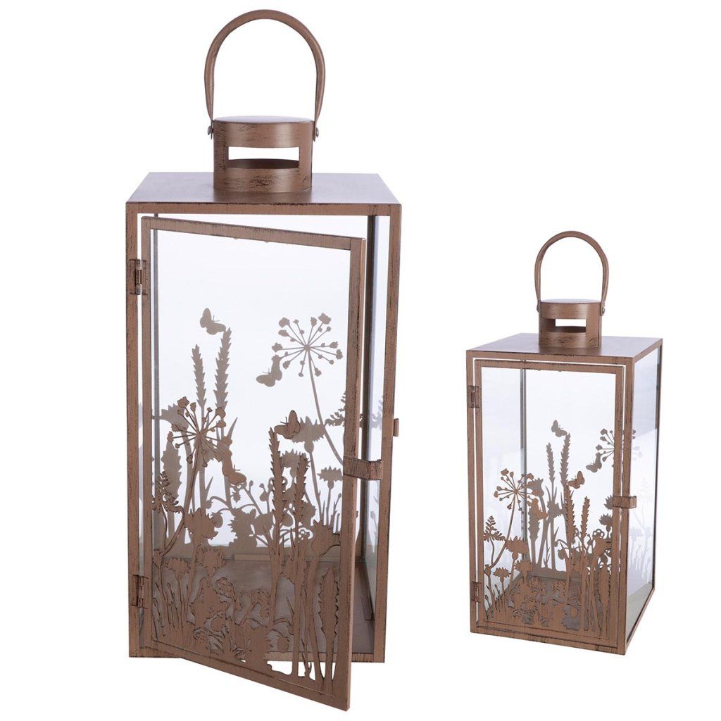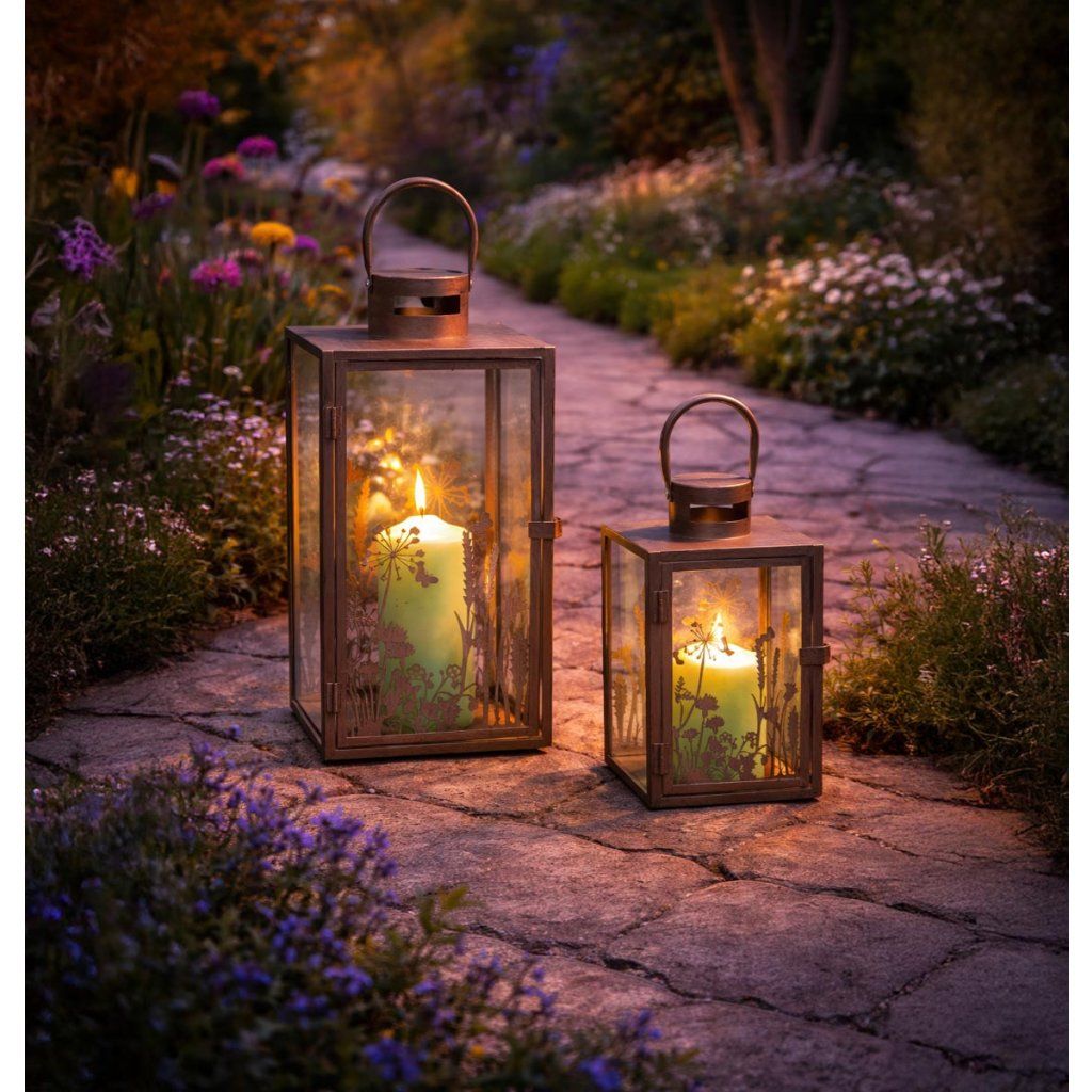 Súprava svietidiel je štýlovou dekoráciou do každého interiéru. Elegantný kovový dizajn v kombinácii s čírym sklom a jemným kvetinovým motívom vytvára romantickú a útulnú atmosféru. Lampióny rôznych veľkostí sú ideálne na stôl, komodu, parapet a ako súčasť sezónneho aranžmánu.