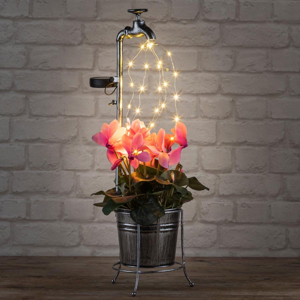 5 svietiacich prameňov s 30 LED diódami simuluje tečúcu vodu a večer nádherne svieti vďaka solárnemu panelu s dobíjateľnou batériou AA.