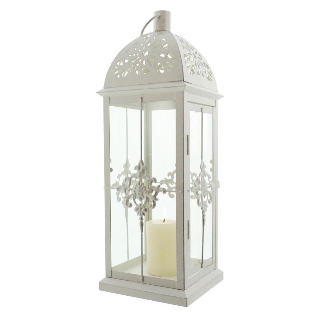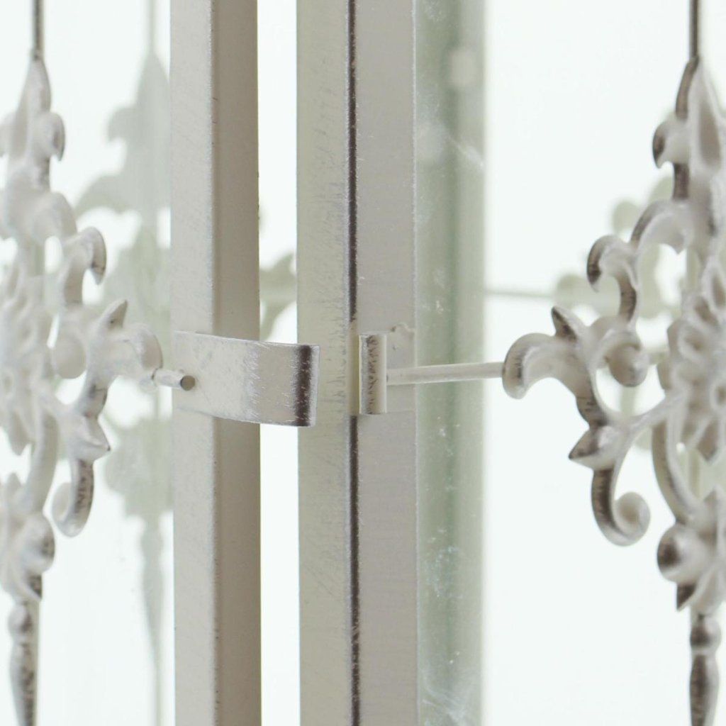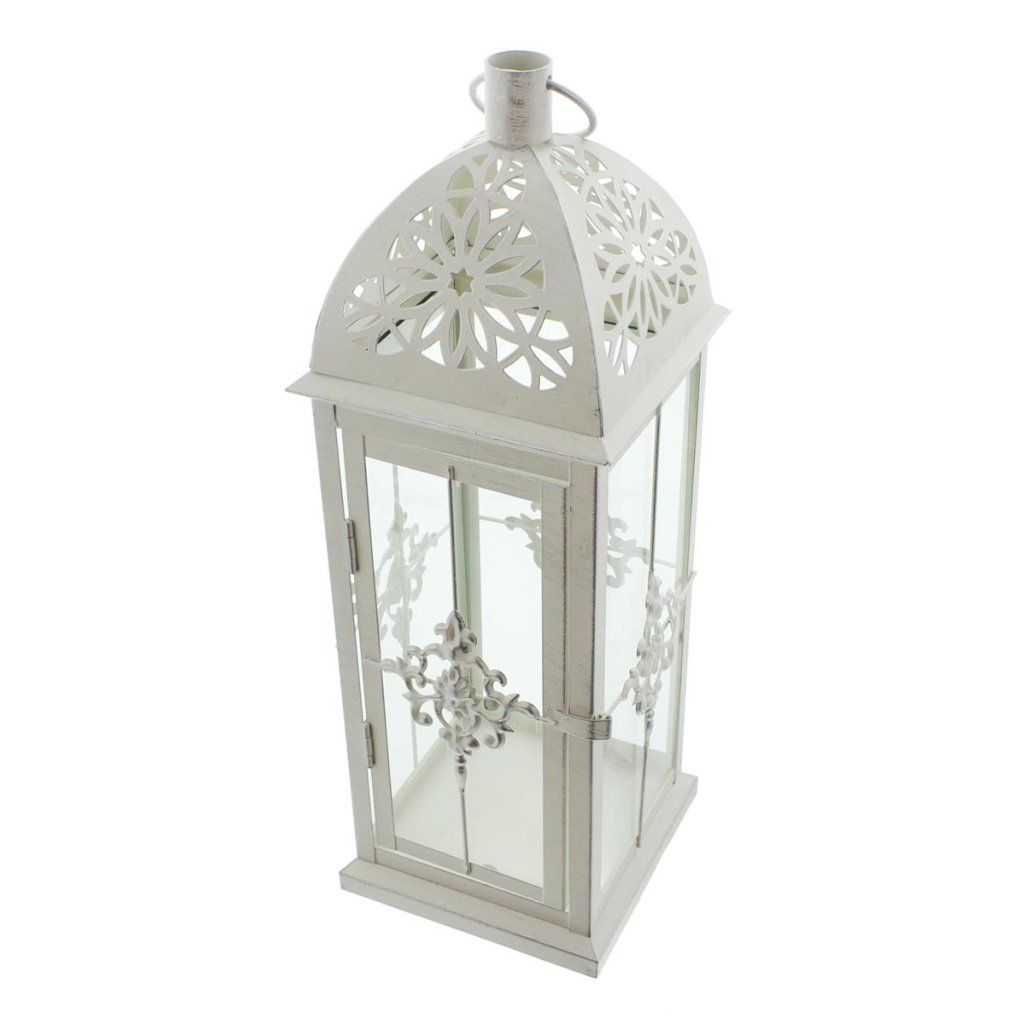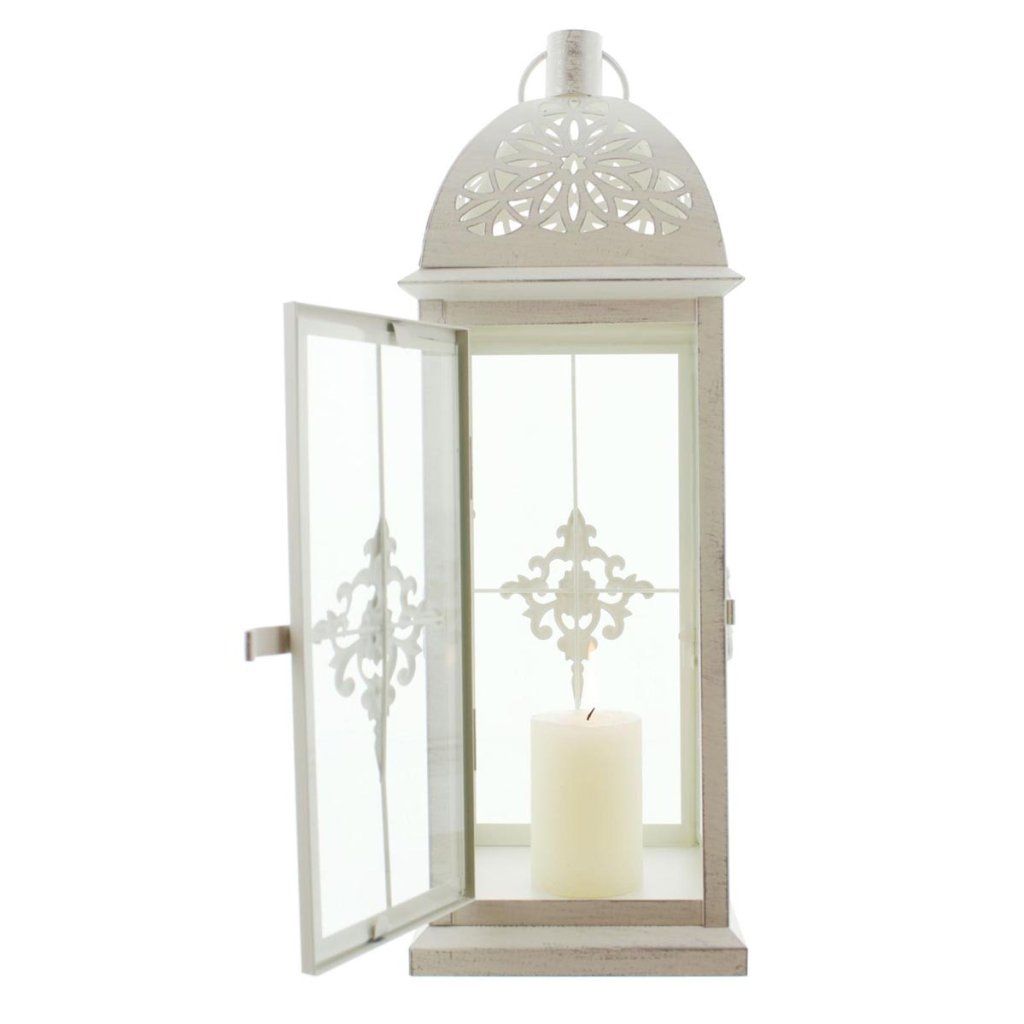 Táto elegantná kovová lampa v matnej bielej farbe zaujme svojím jemným dizajnom a romantickým vzhľadom. Povrch s ľahkou striebornou patinou dodáva lampášu vintage nádych a zdôrazňuje jeho dekoratívnosť.