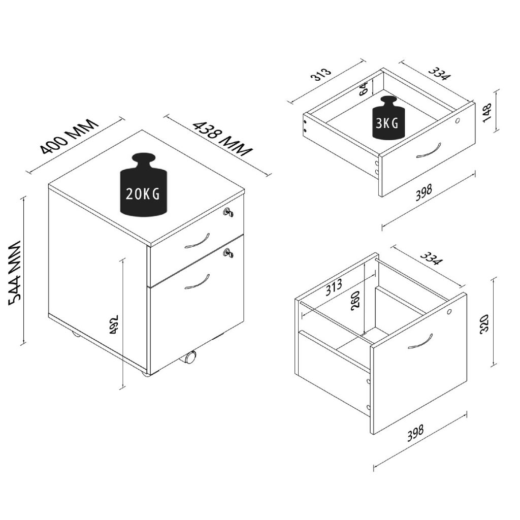 - dve uzamykateľné zásuvky na bezpečné uloženie vašich dokumentov a cenností.