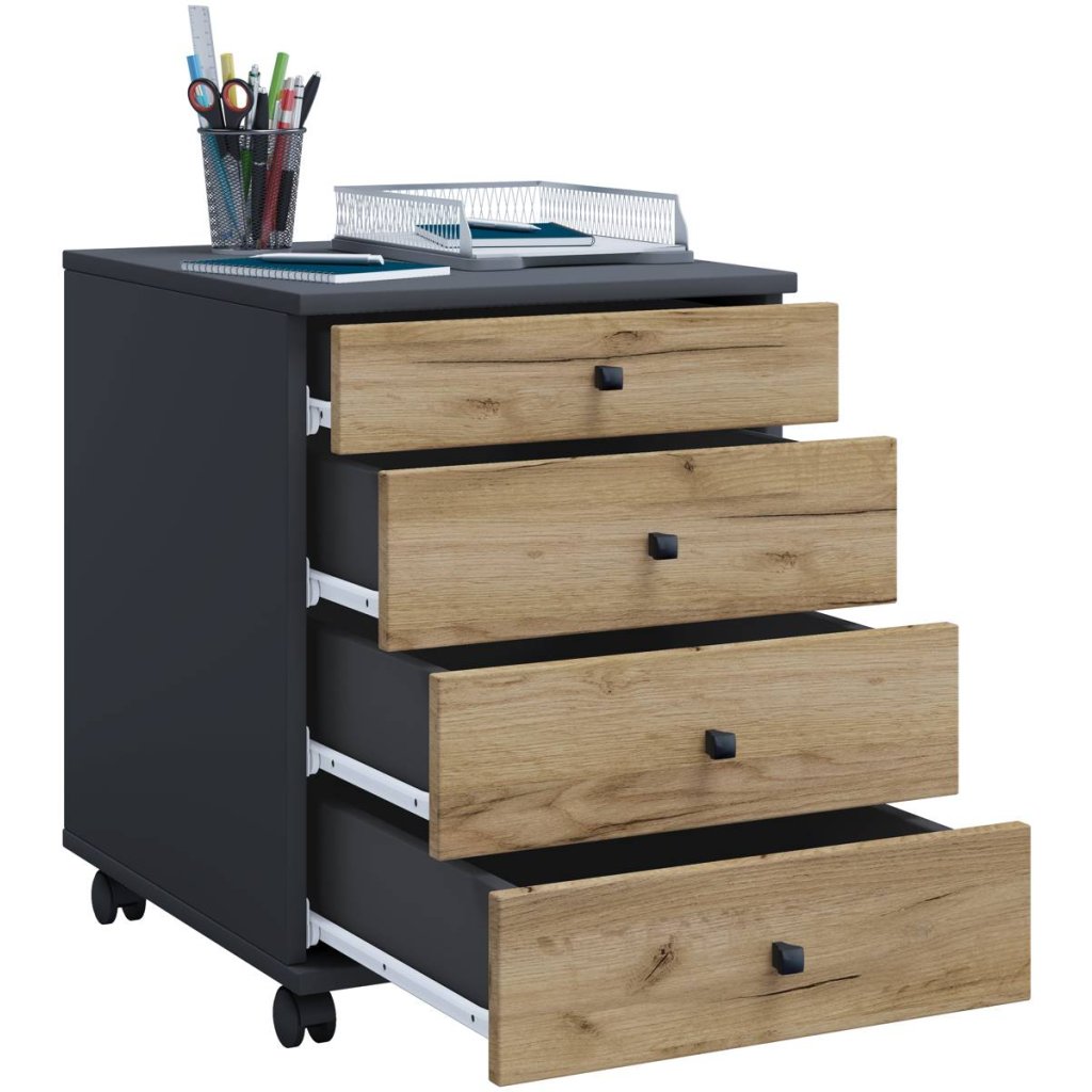 Hlavné vlastnosti: - Praktická zásuvková jednotka - Reprodukcia drevenej konštrukcie - 4 kolieska zaisťujú mobilitu - K dispozícii v rôznych farbách - Rozmery výrobku: cca v. 57 x š. 42 x hl. 50 cm Mobilná zásuvková jednotka "Lona Mini" ponúka veľa miesta a je flexibilným pomocníkom do každej kancelárie alebo detskej izby. Jednoduchý a klasický dizajn sa hodí na každý štandardný stôl alebo sa dá používať samostatne.Dodatočné parametre