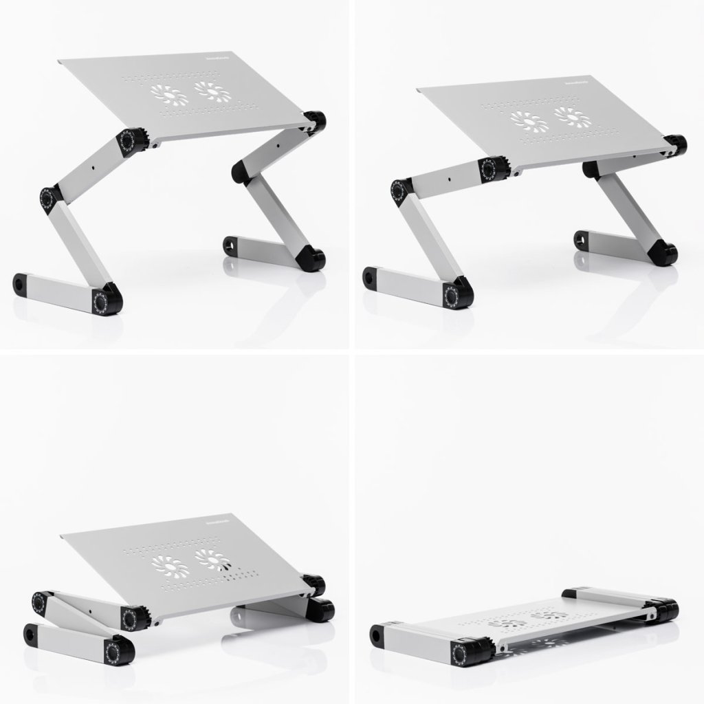 Multifunkčný stôl s nastaviteľnou konštrukciou je ideálny na prácu s notebookom, ale aj ako pult na čítanie alebo jedenie. Dve 3 kĺbové nohy s možnosťou otáčania až o 360° umožňujú používanie v rôznych polohách.