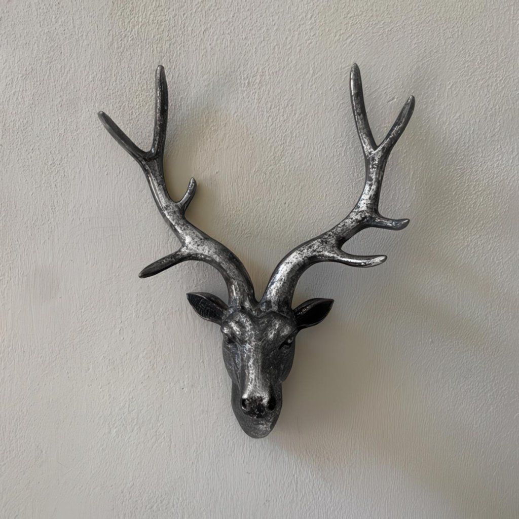 Výrazná nástenná dekorácia v podobe hlavy jeleňa dodáva interiéru osobitý charakter a elegantný nádych. Detailné spracovanie a jemne patinovaný povrch vytvárajú pôsobivý vizuálny efekt, ktorý sa dokonale hodí do moderných, industriálnych a rustikálnych interiérov.