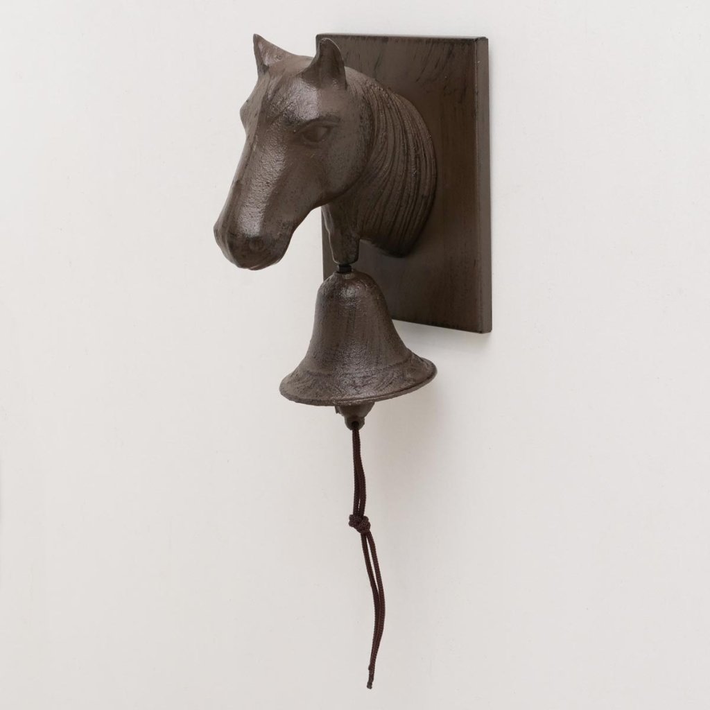 Liatinový zvonček s ozdobnou konskou hlavou je štýlová záhradná dekorácia, ktorá dokonale doplní vstup do domu, terasu a záhradnú bránu. Robustná konštrukcia umožňuje jednoduché pripevnenie na stenu a zaručuje dlhú životnosť aj pri používaní vonku.