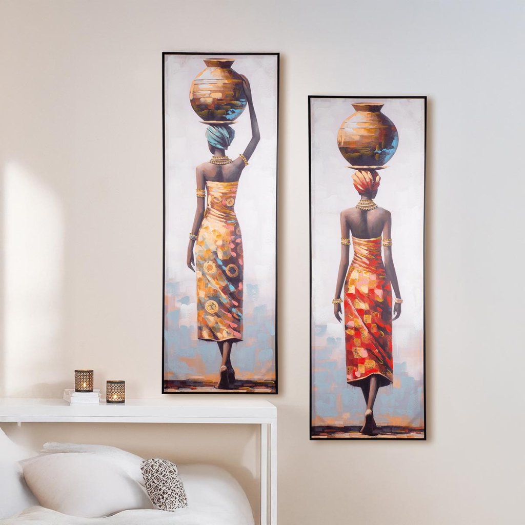 Vneste do svojho interiéru štýlovú eleganciu a kultúrny výraz s 2-dielnou súpravou Makeda obrazy. Každý obraz zobrazuje výrazný ženský motív inšpirovaný africkou kultúrou a etnickým štýlom, vďaka čomu sú ideálne ako dominantný obraz do obývačky, spálne alebo moderného interiéru.