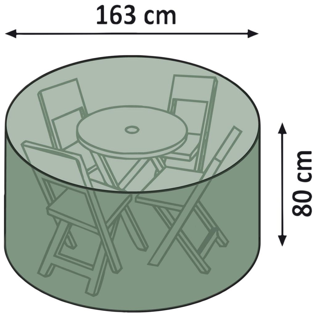 Praktický ochranný kryt na záhradný nábytok je určený na zakrytie okrúhleho stola s maximálne štyrmi stoličkami. Spoľahlivo chráni nábytok pred dažďom, prachom, nečistotami a nepriaznivými poveternostnými podmienkami. Vďaka odolnému materiálu je kryt ideálny na použitie v záhrade, na terase a na balkóne.
