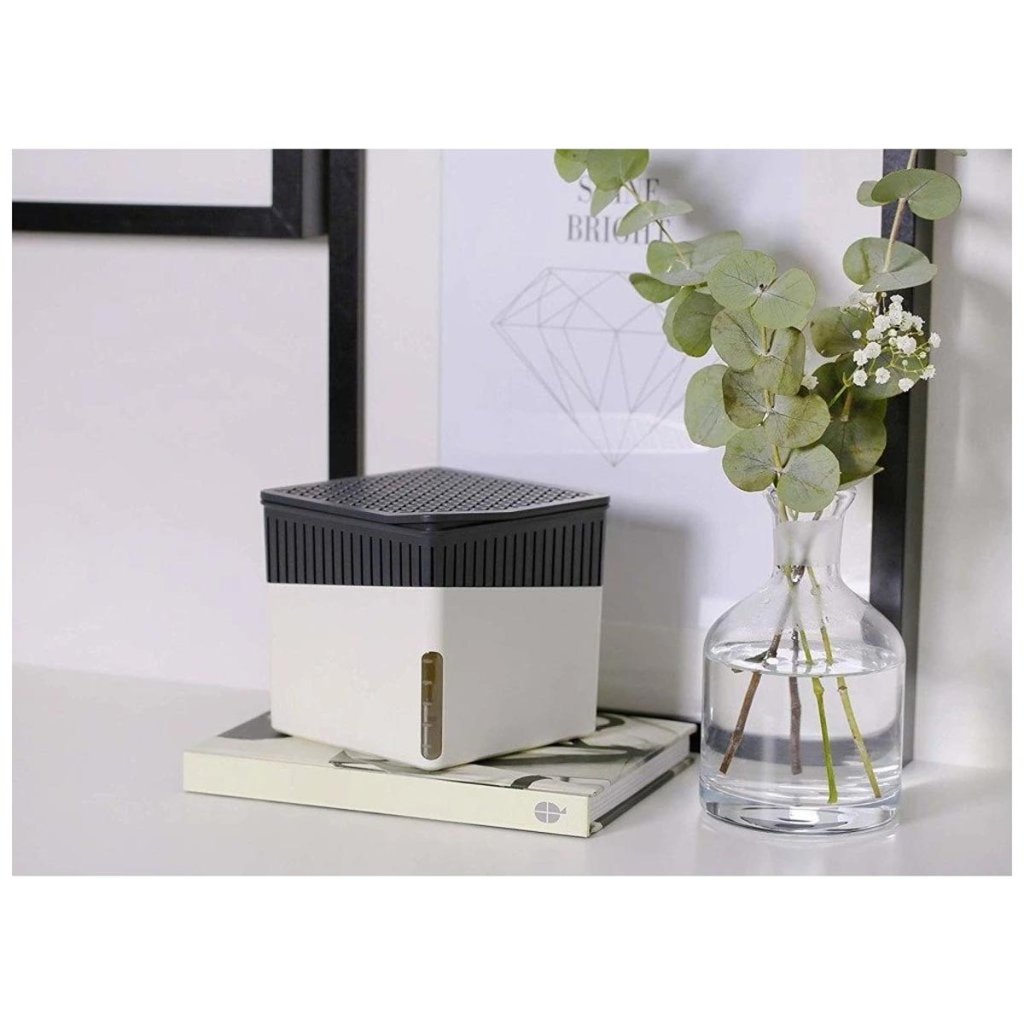 Štýlový potlačovač vlhkosti Cube XL zabezpečuje nižšiu vlhkosť a príjemnejšiu klímu v interiéri. Vďaka väčšej kapacite náplne 1000 g je ideálny pre veľké miestnosti a dlhodobé používanie.