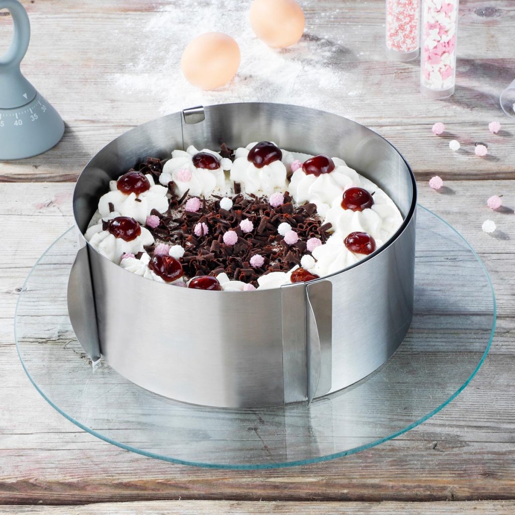 Nastaviteľná forma umožňuje jednoduché tvarovanie, vrstvenie a vyberanie koláčov a tort bez rizika roztopenia cesta.